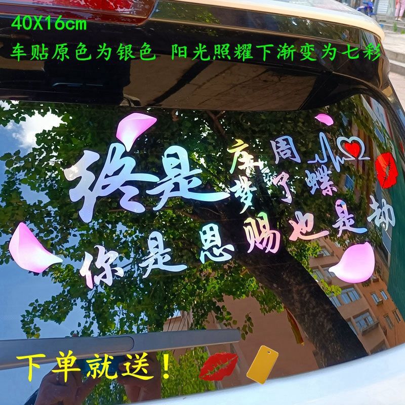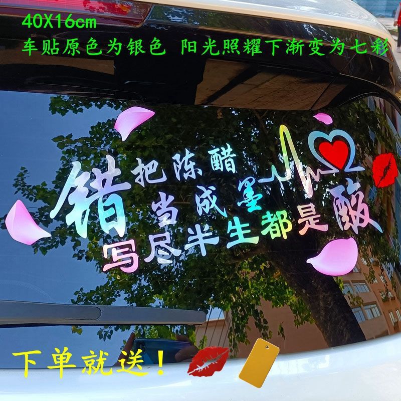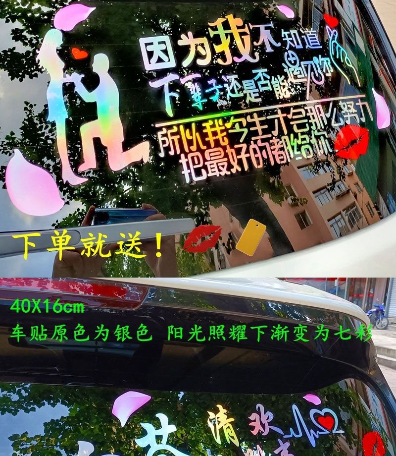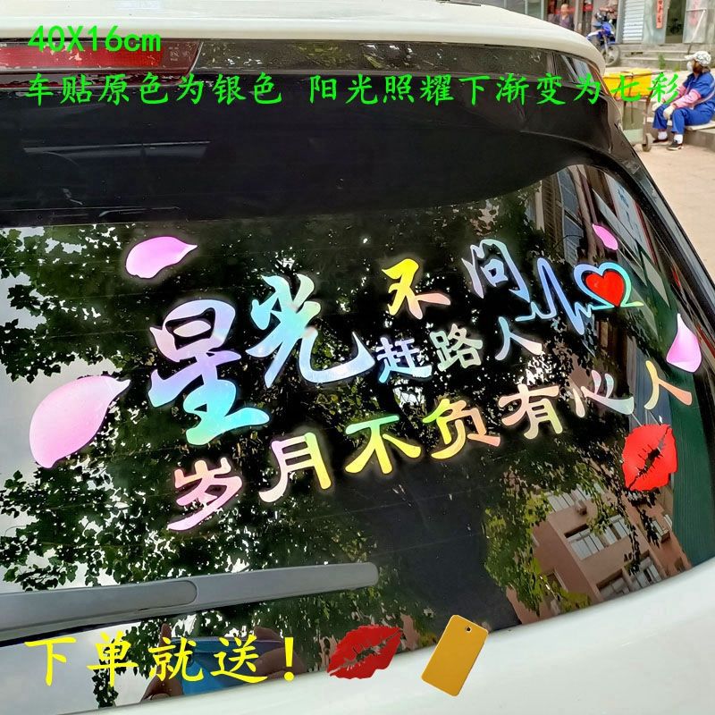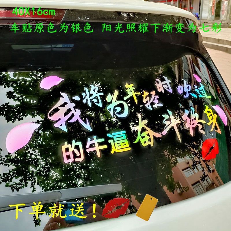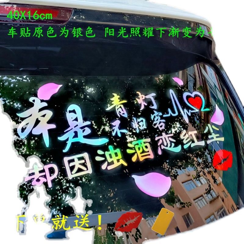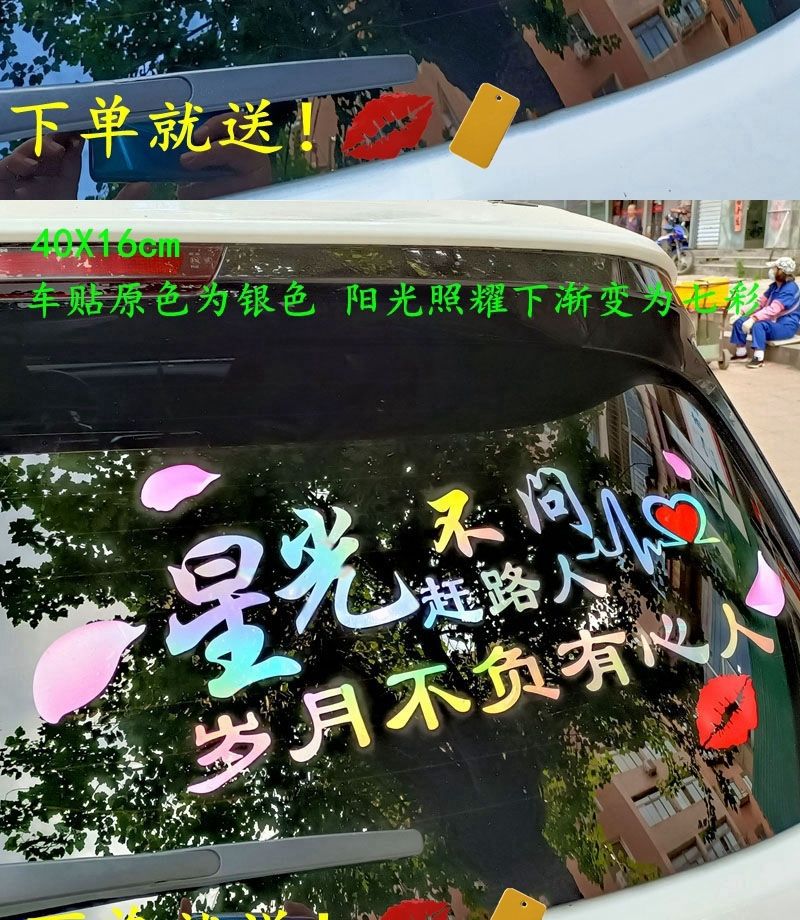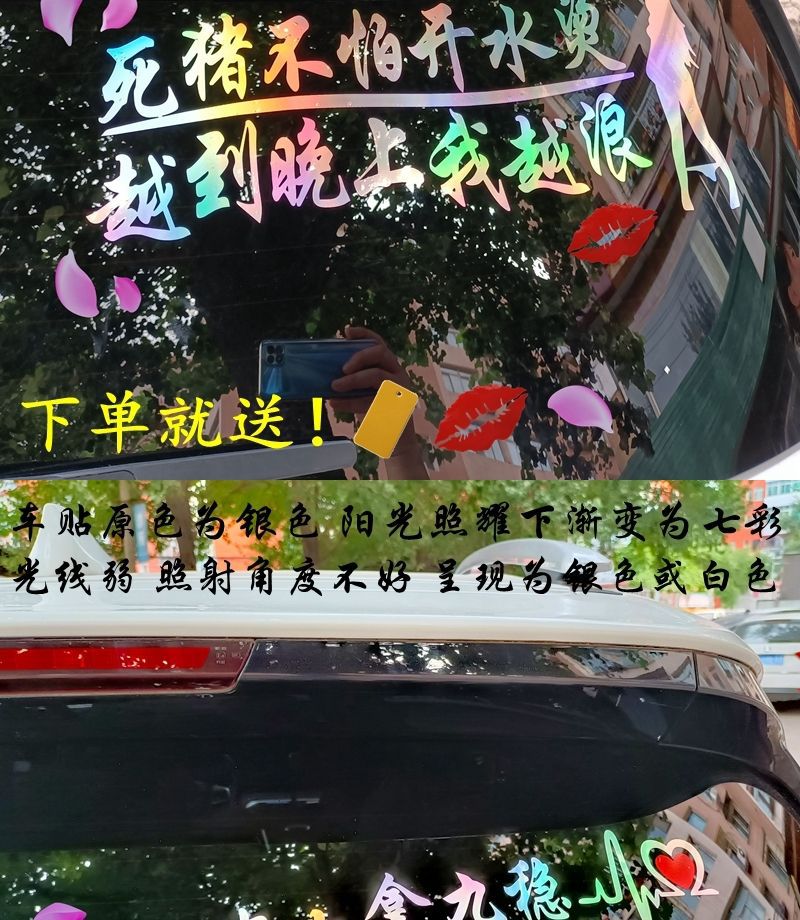 다채로운 반사 텍스트 자동차 스티커 후면 창 유리 장식 스티커 개인화 된 창조적 인 자동차 바디 레이저 자동차 스티커 인터넷 유명 인사 스티커