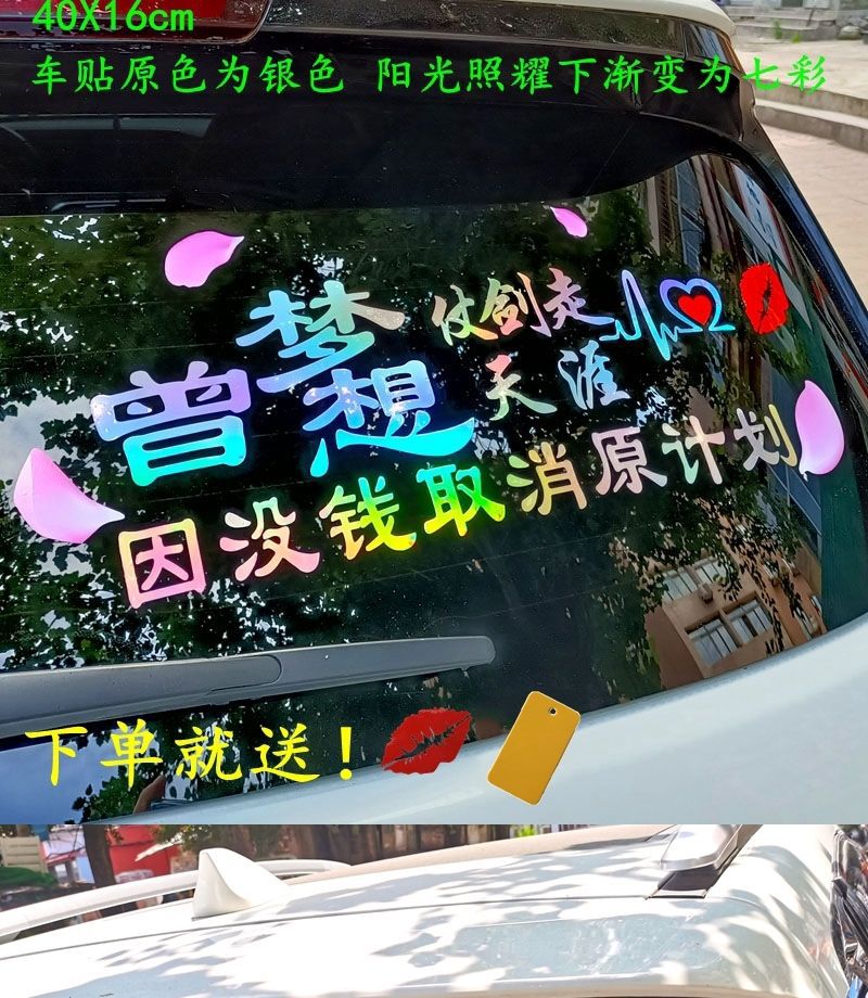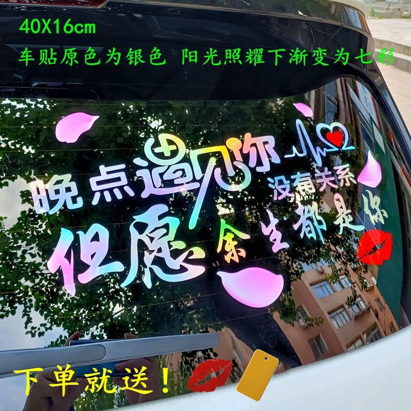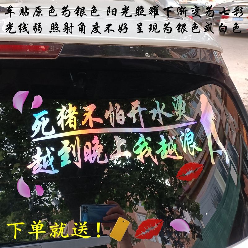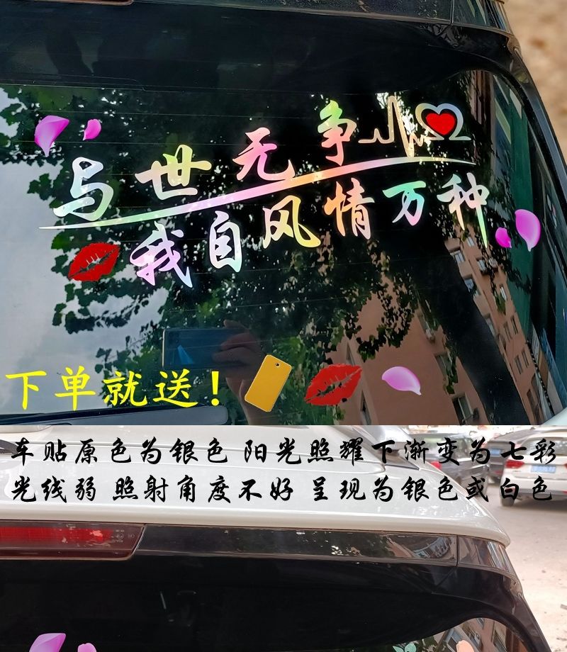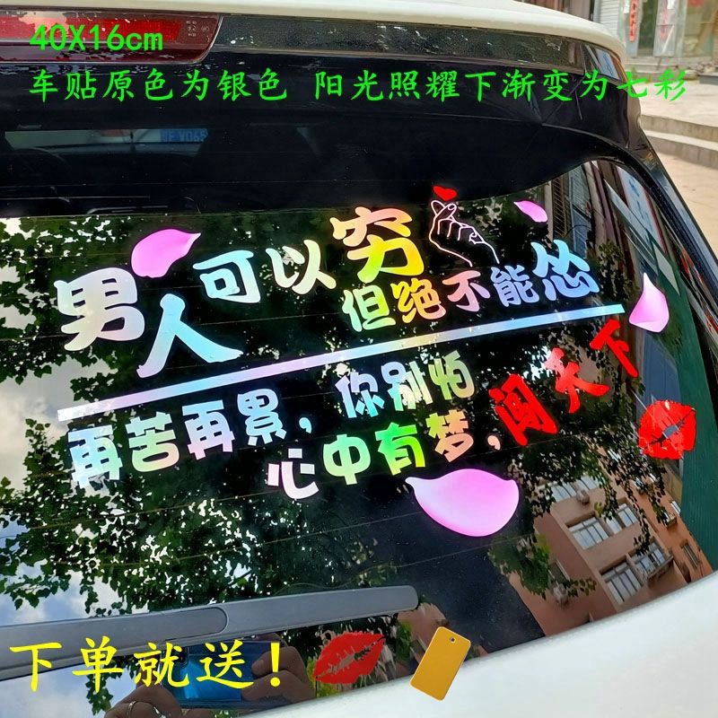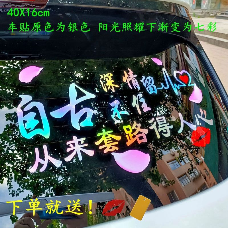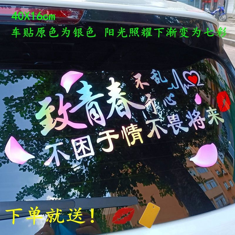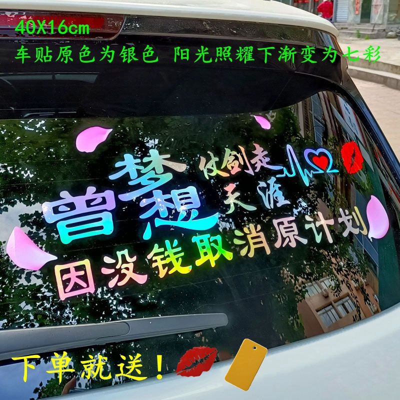 다채로운 반사 텍스트 자동차 스티커 후면 창 유리 장식 스티커 개인화 된 창조적 인 자동차 바디 레이저 자동차 스티커 인터넷 유명 인사 스티커