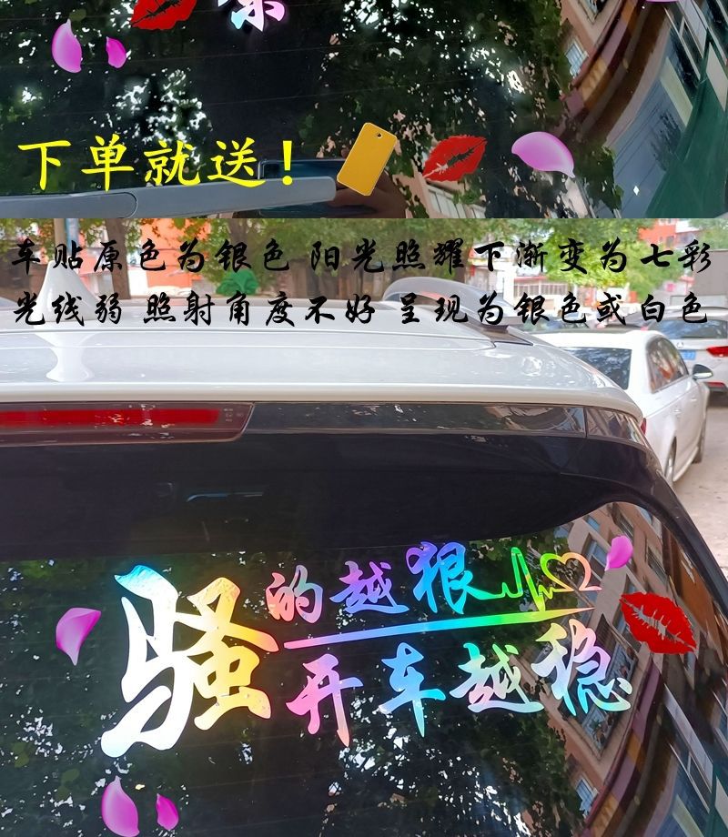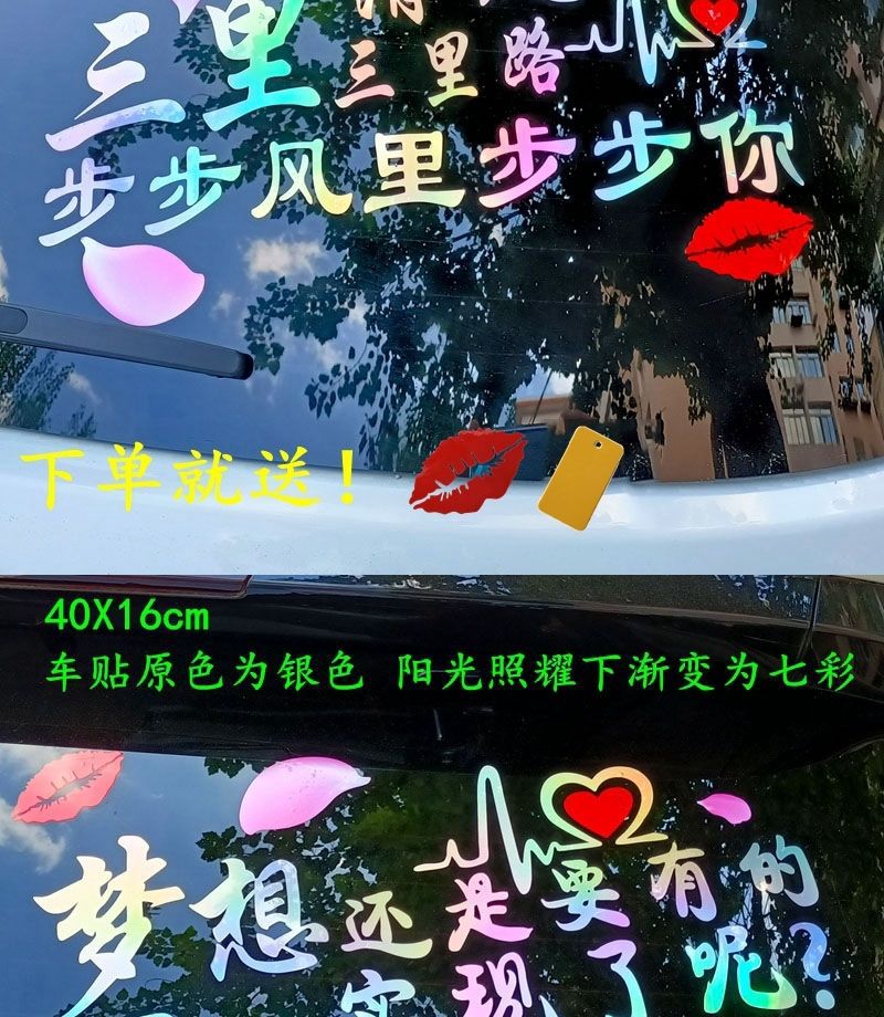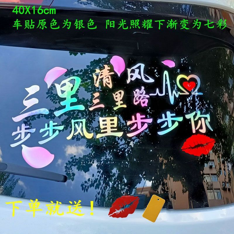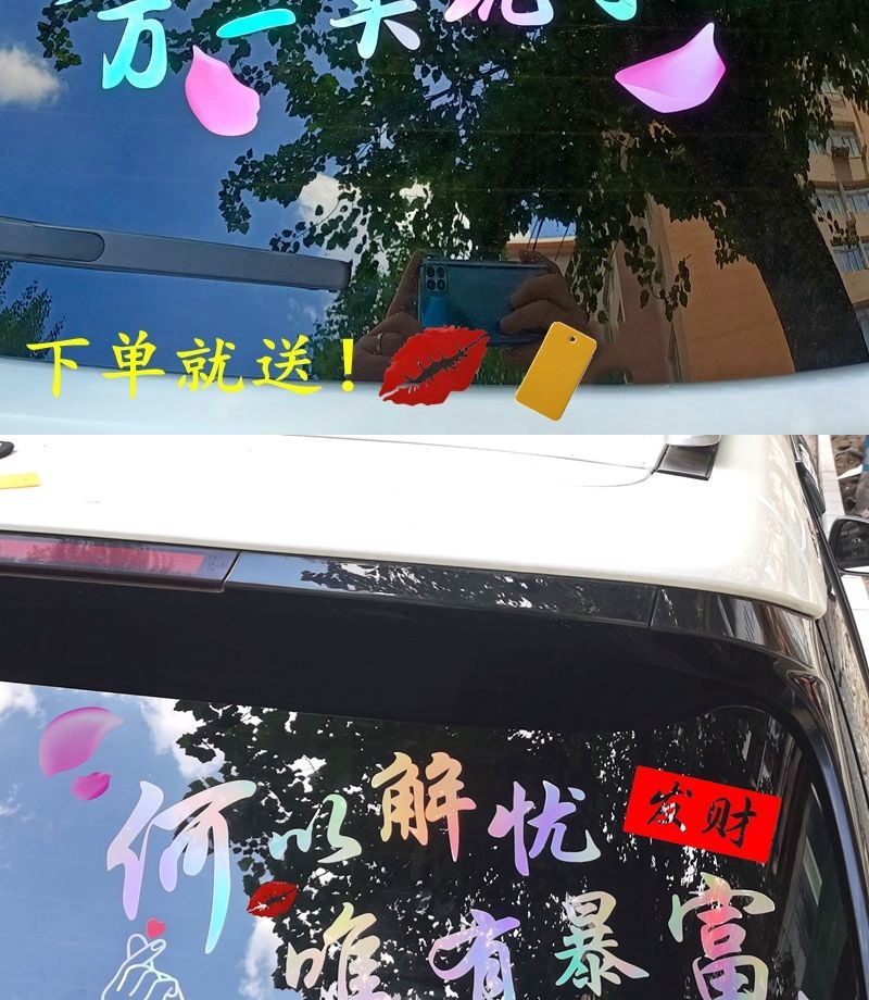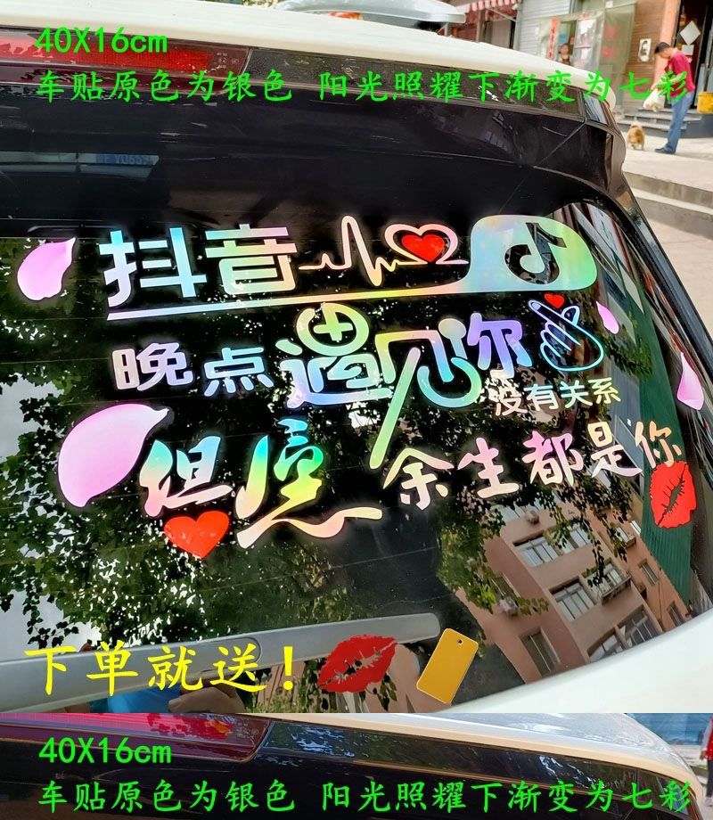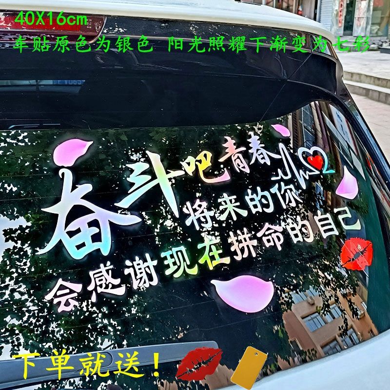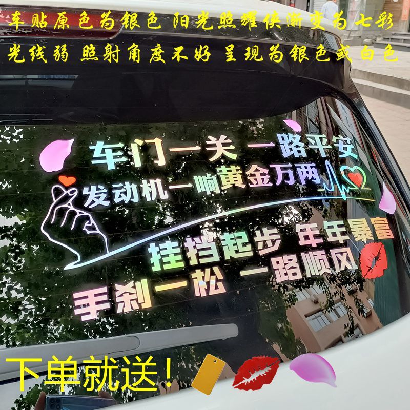 다채로운 반사 텍스트 자동차 스티커 후면 창 유리 장식 스티커 개인화 된 창조적 인 자동차 바디 레이저 자동차 스티커 인터넷 유명 인사 스티커스토어 가기