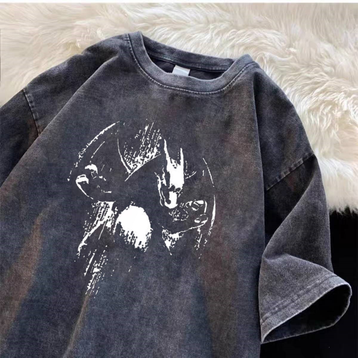 유럽과 미국 스타일의 힙합 패션 브랜드 고민 반팔 티셔츠 여성용 플러스 사이즈 느슨한 오버 사이즈 세탁 블랙 프린트 탑 옷