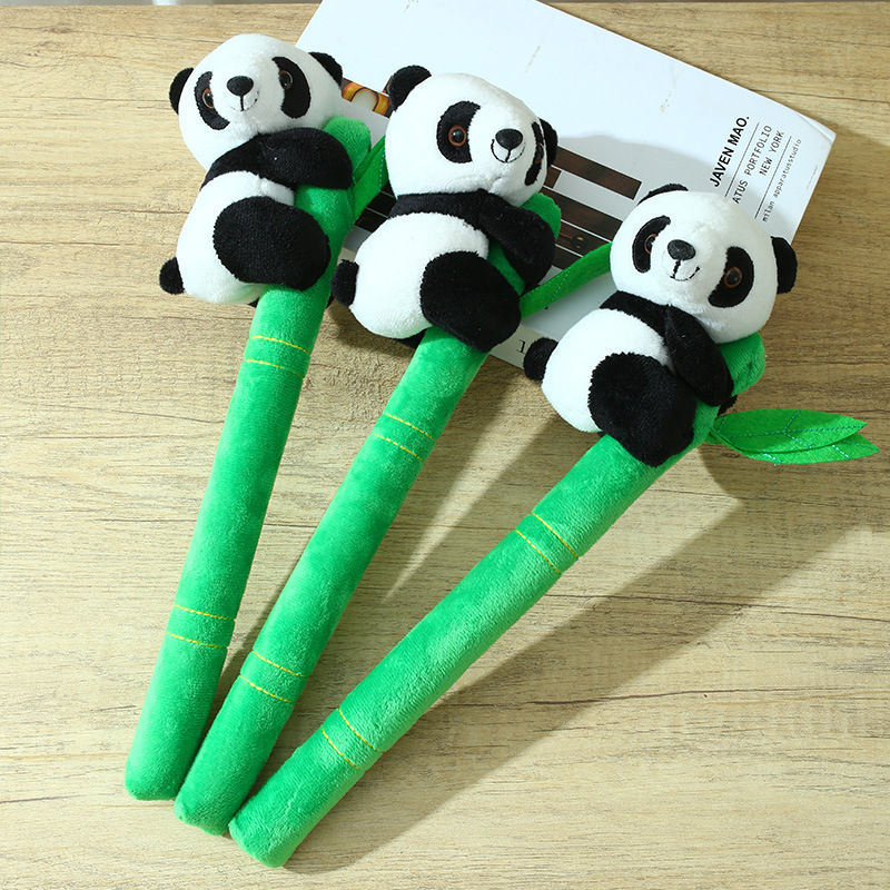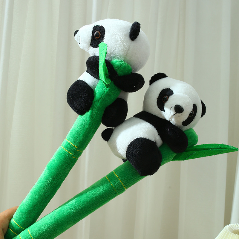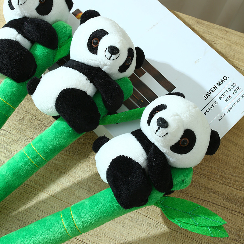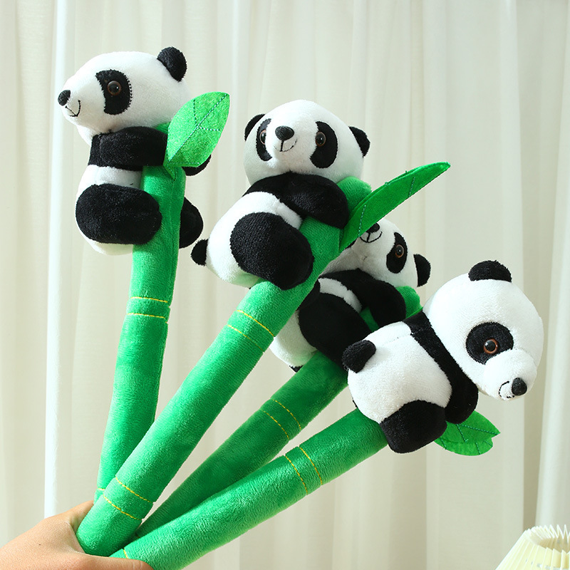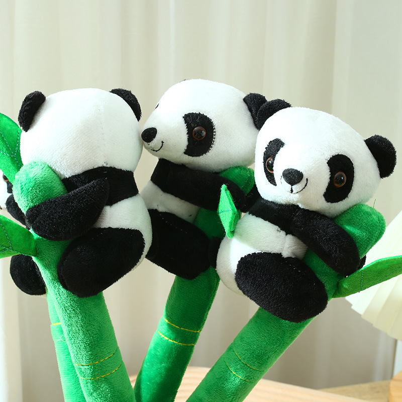 대나무 팬더 스틱을 들고 귀여운 팬더 대나무 너구리 인형 꽃 선물 명랑한 자리 기념품 창조적 인 선물 장식품스토어 가기