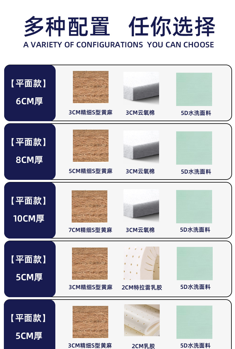 • 14cm 두께 [플랫] 12cm 미세 S 황마 2cm 라텍스 5D 세척 직물
