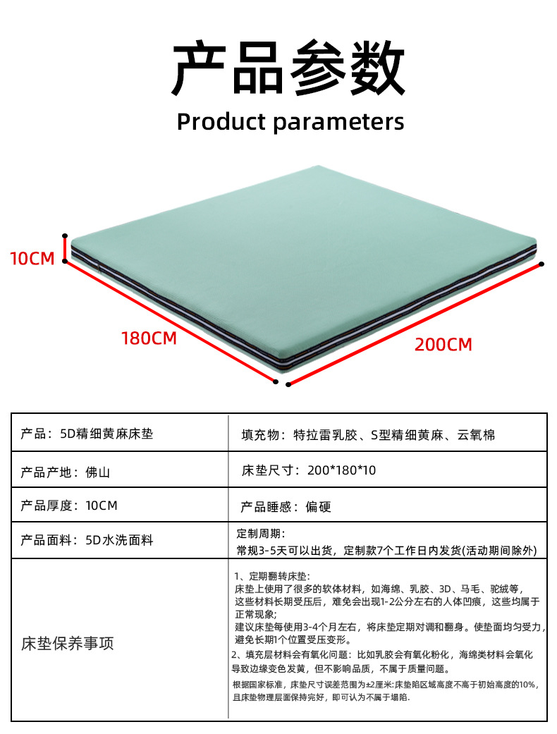 • 9cm 두께 [플랫] 7cm 미세 S 타입 황마 2cm 라텍스 5D 세척 직물