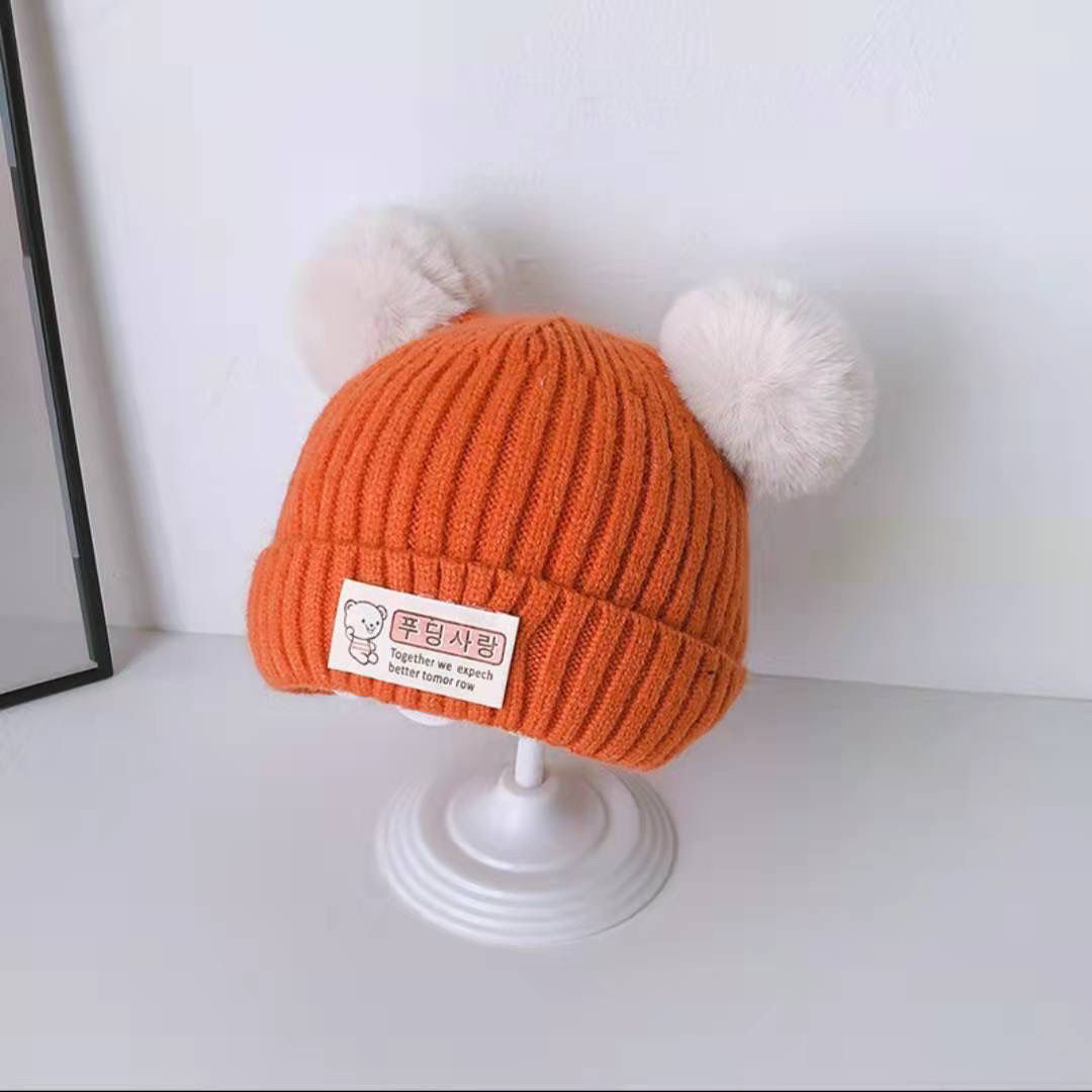 겨울용 두꺼운 보온 모직 모자 한국 스타일 유아 모자 아기 모자 귀여운 곰돌이 니트 귀덮개 모자 어린이용