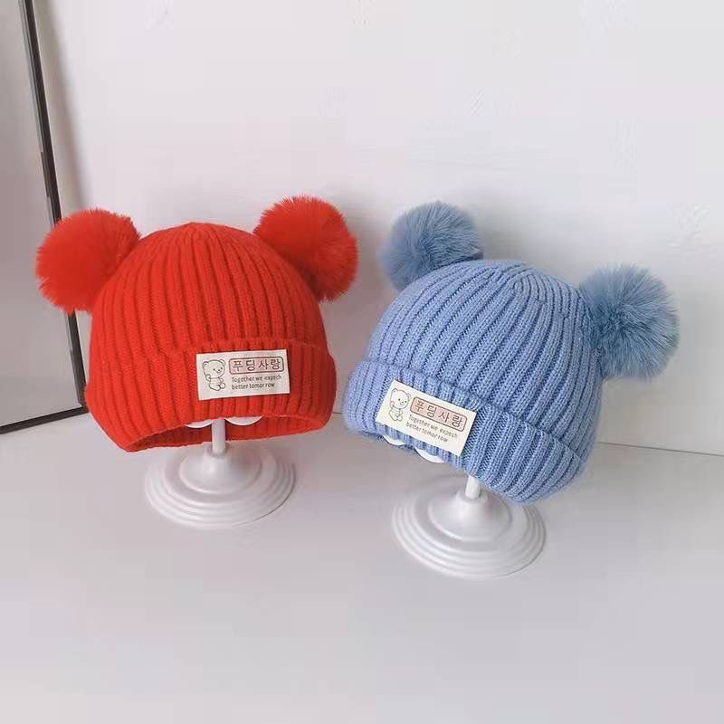 겨울용 두꺼운 보온 모직 모자 한국 스타일 유아 모자 아기 모자 귀여운 곰돌이 니트 귀덮개 모자 어린이용스토어 가기