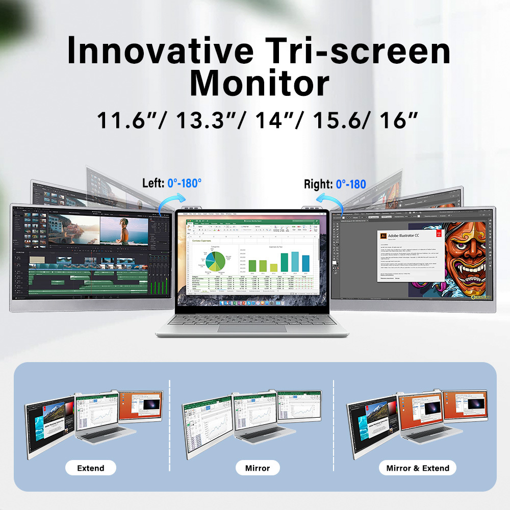 15.6 14 13inch 초박형 듀얼 스크린 원라인 노트북 확장 외부 보조 스크린 사무실 주식 거래 휴대용 모니터스토어 가기