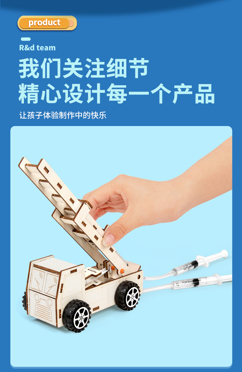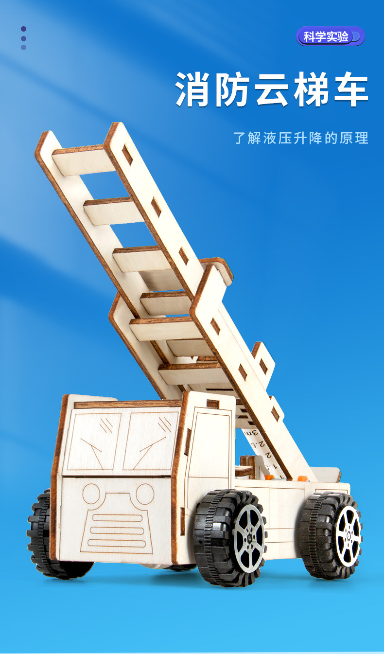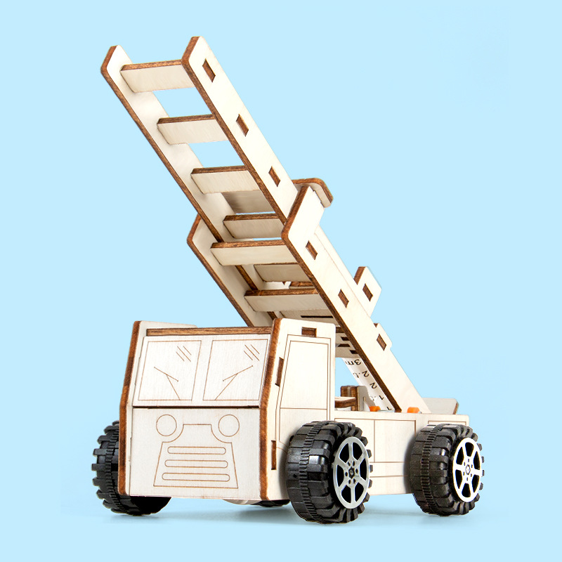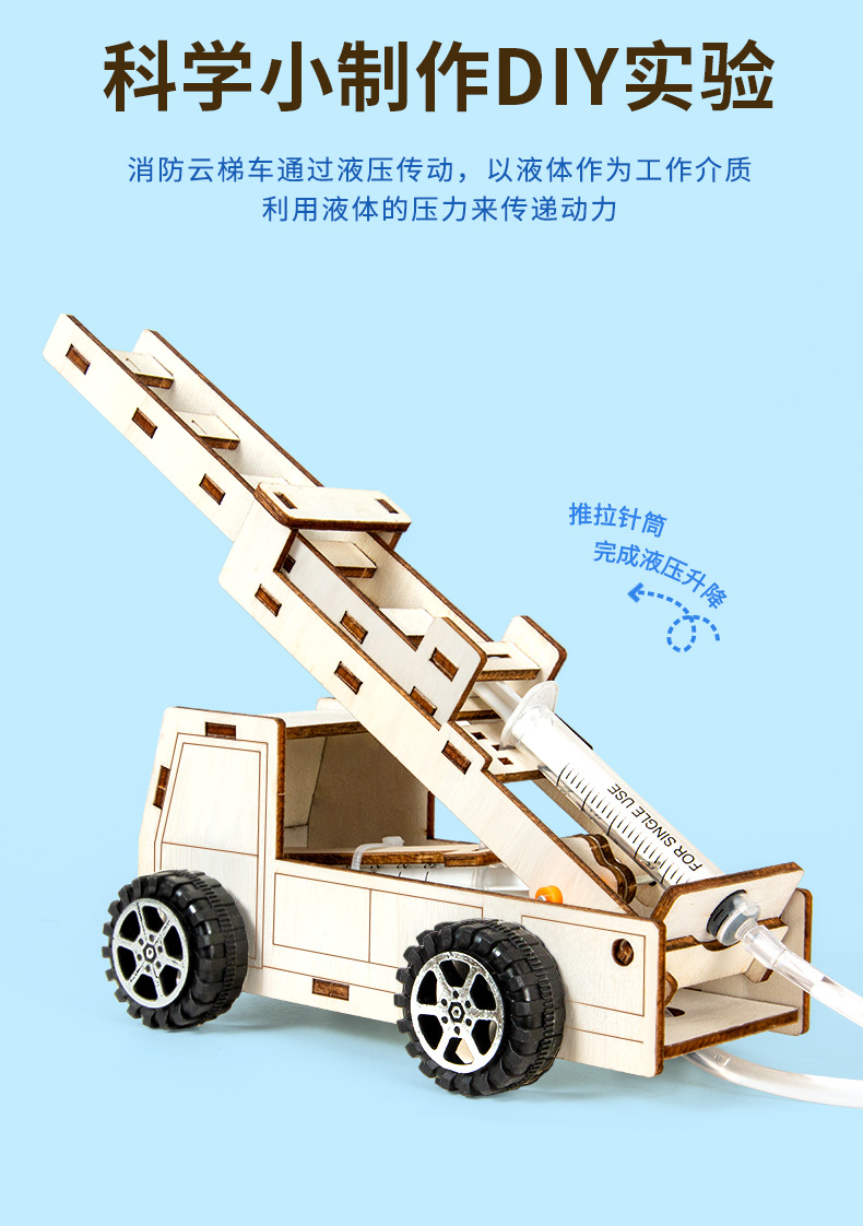 과학 실험 DIY 유압 화재 사다리 자동차 모델 증기 기술 작은 생산 학생 어린이 수제 재료
