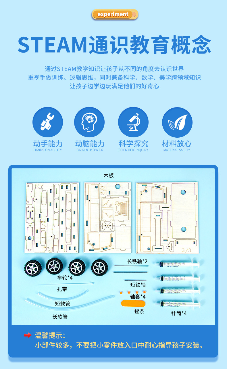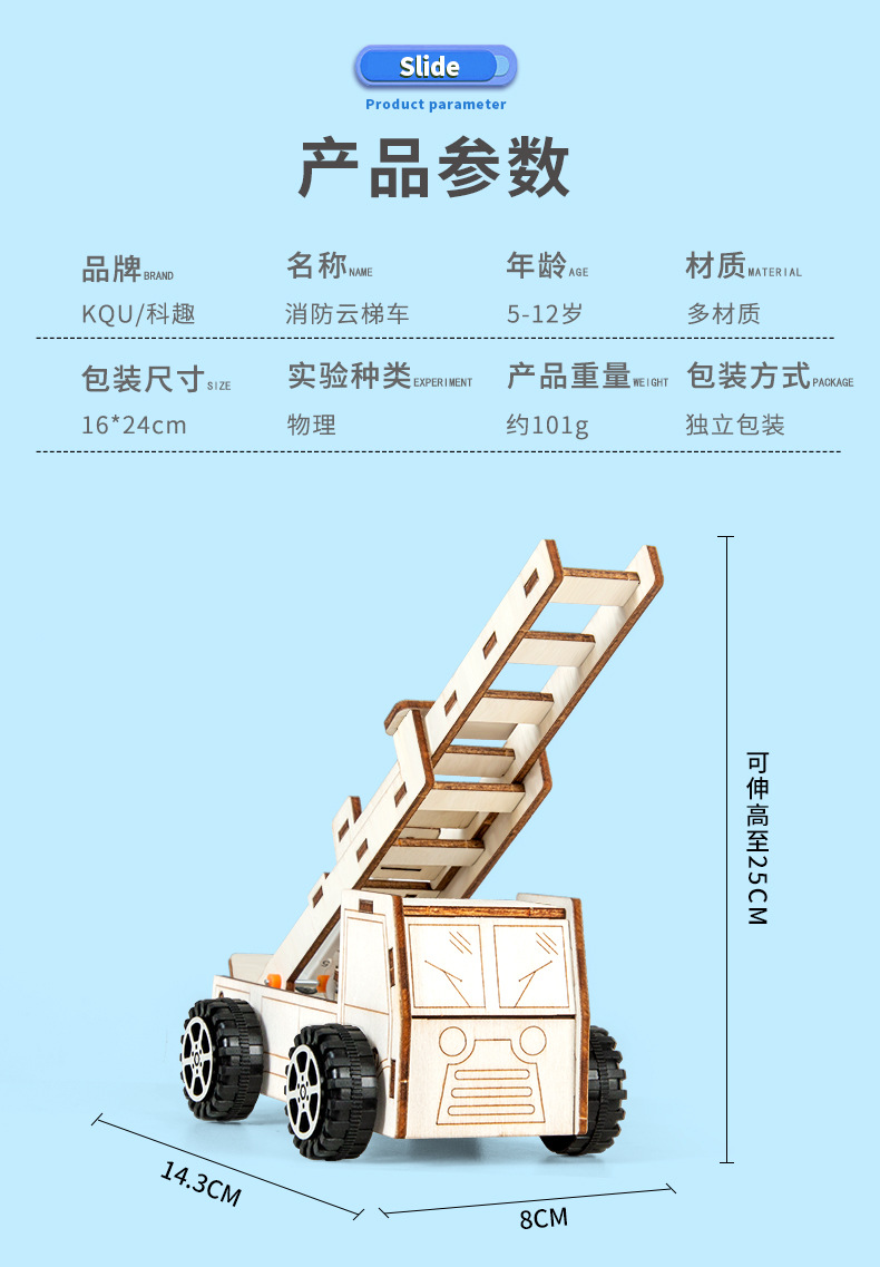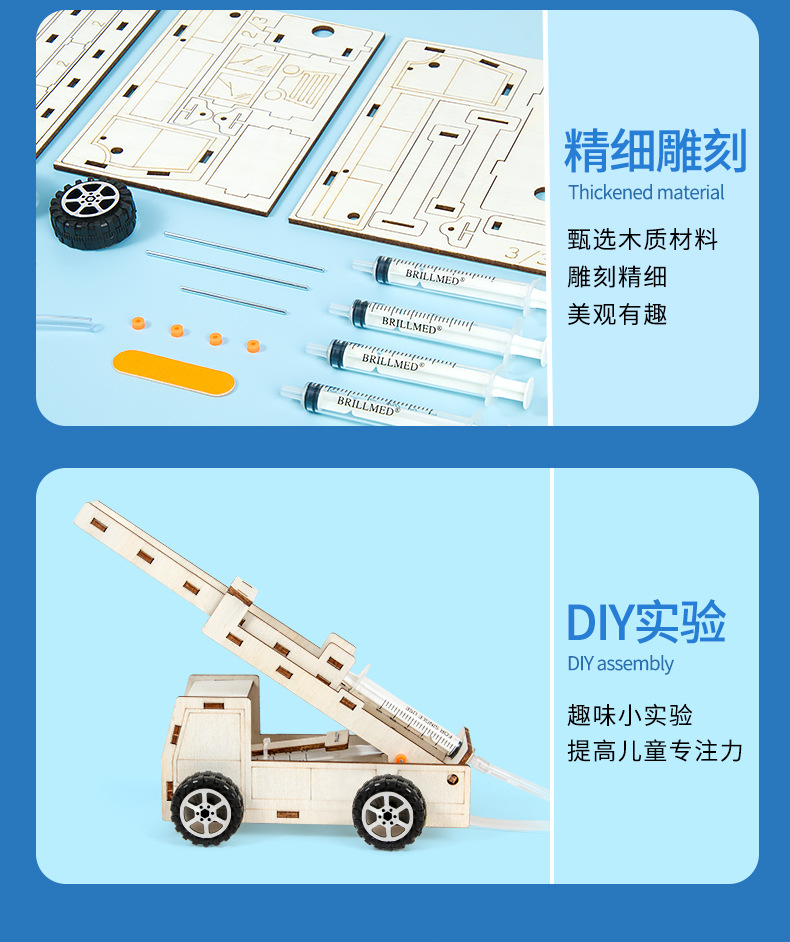 과학 실험 DIY 유압 화재 사다리 자동차 모델 증기 기술 작은 생산 학생 어린이 수제 재료