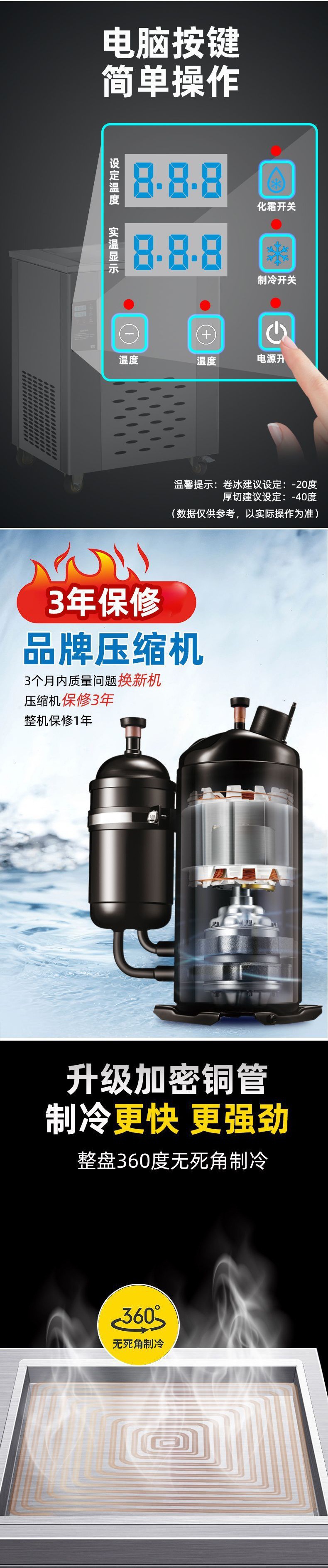 • 단일 라운드 팬 프라이팬 제빙기 높은 전력 냉동 빠른 3000 와트