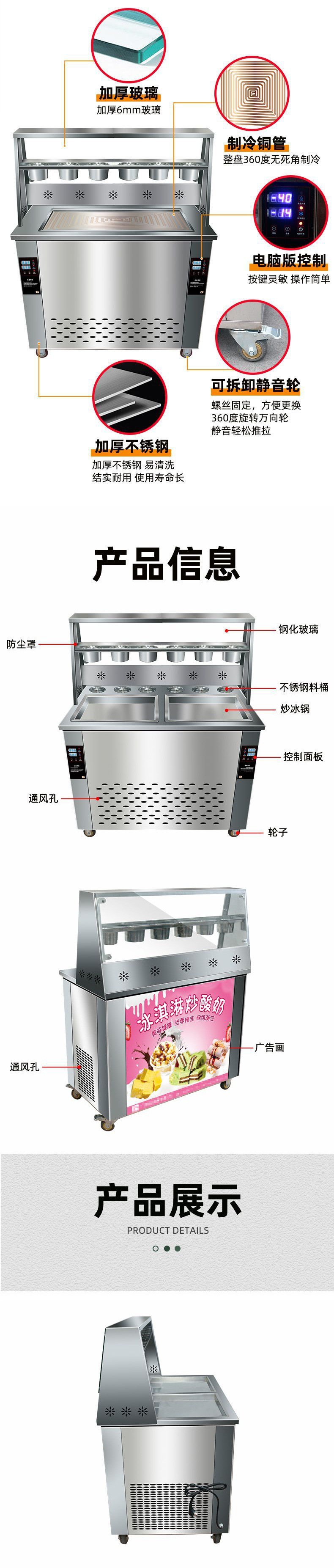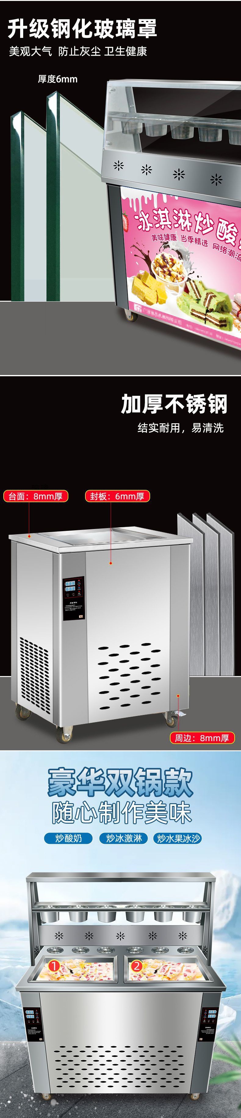 대형 상업용 완전 자동 지능형 아이스 프라이팬 기계 두꺼운 컷 튀긴 요구르트 기계 튀긴 아이스크림 기계 튀긴 아이스 롤 스무디 기계