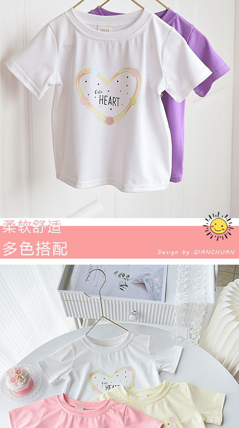 여자 반소매 티셔츠 2024 신식 여름 아동복 트렌디 중 · 빅 어린이 반소매 탑 어린이 고급 면 서양식 여름복스토어 가기