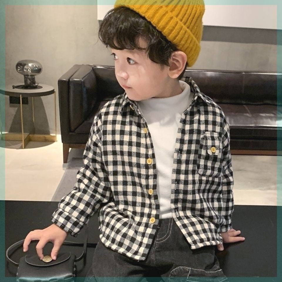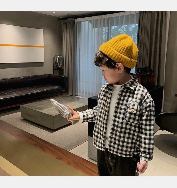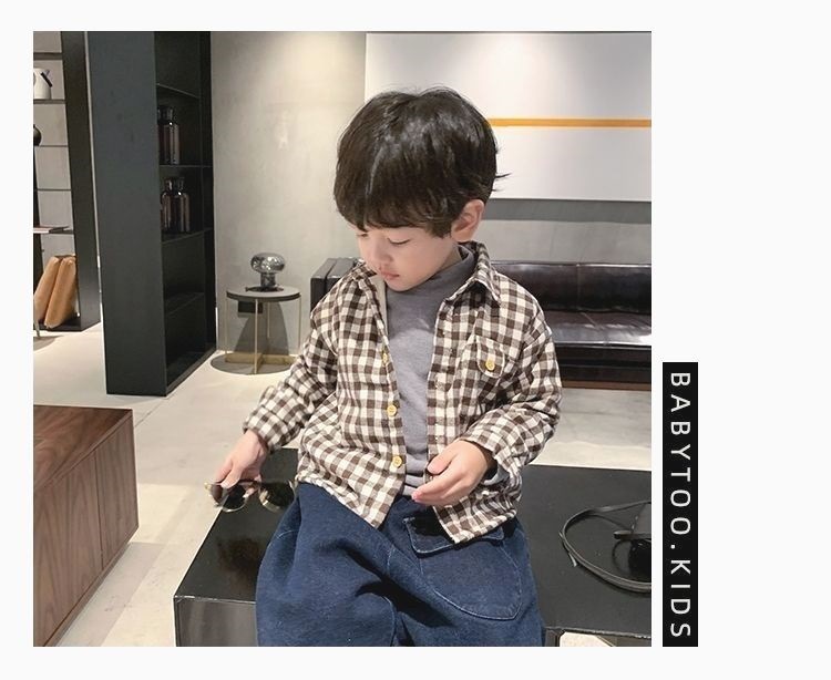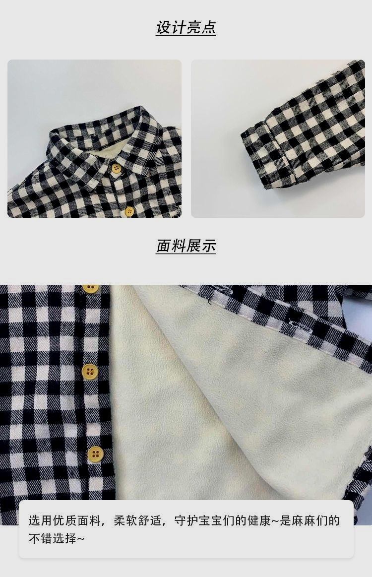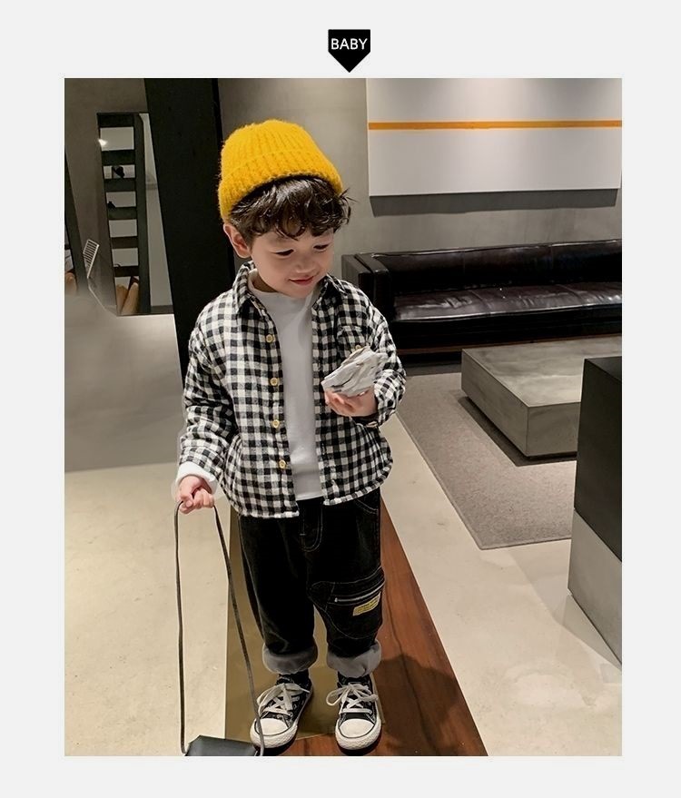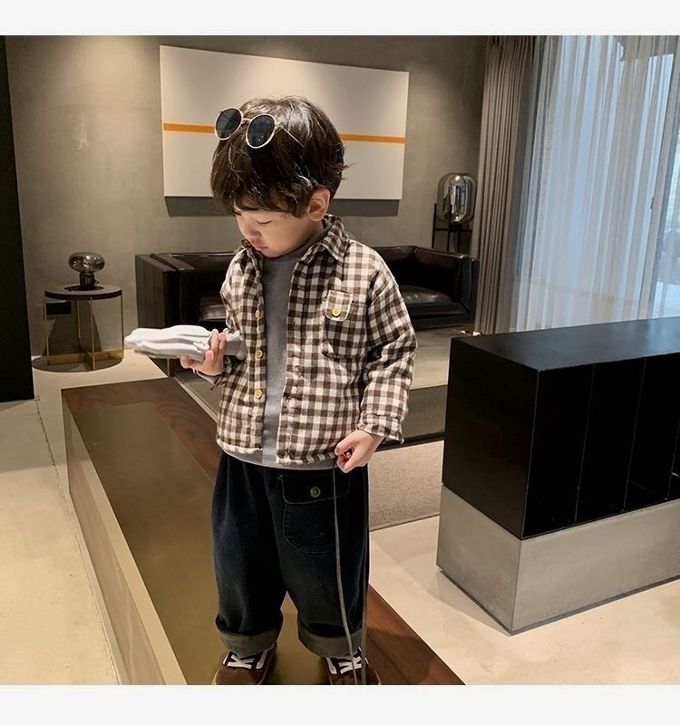 아기 격자 무늬 셔츠 2025 겨울 새 스타일 어린 소년 벨벳 셔츠 어린이 유행 다목적 옷깃 탑 유행스토어 가기