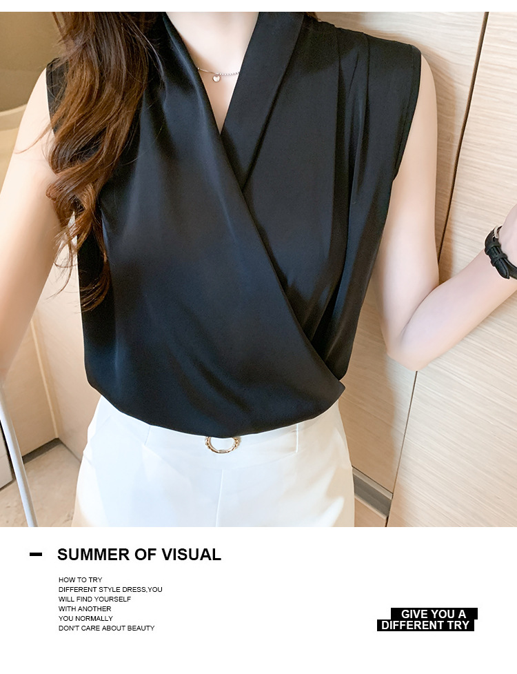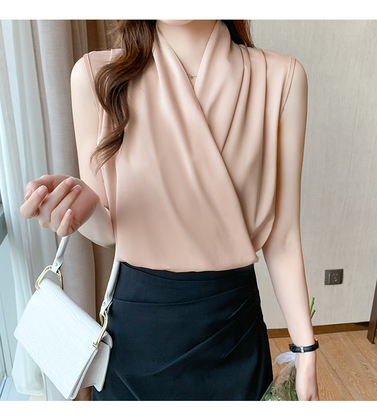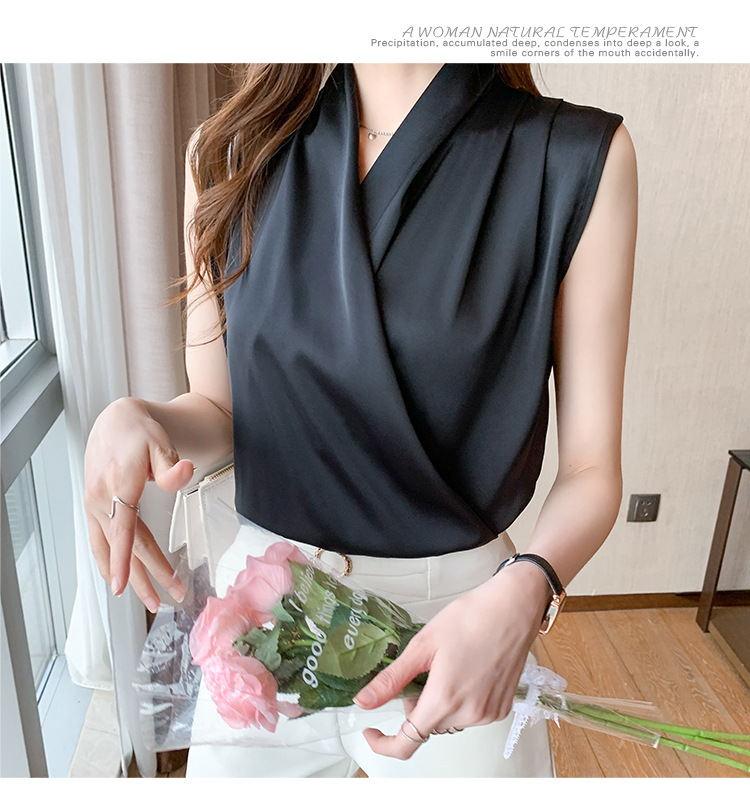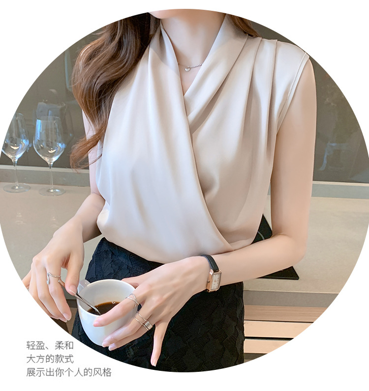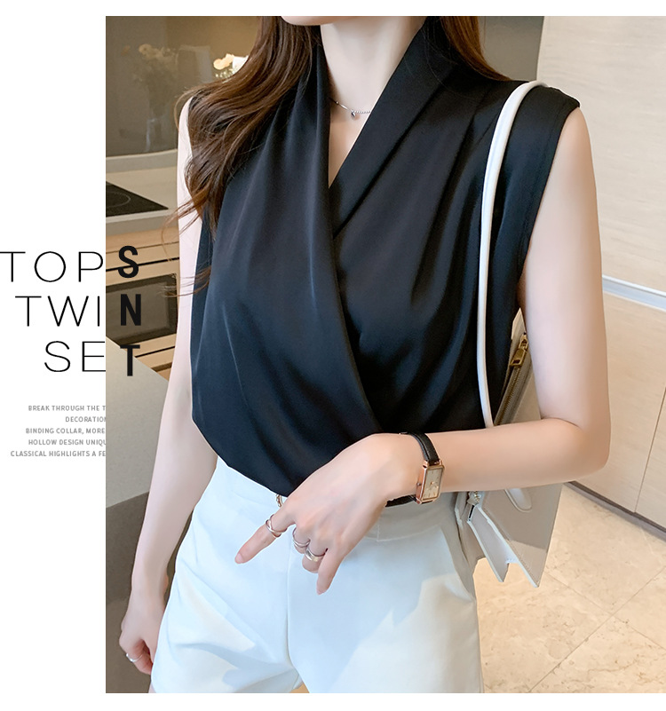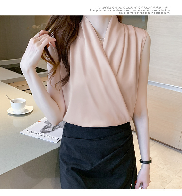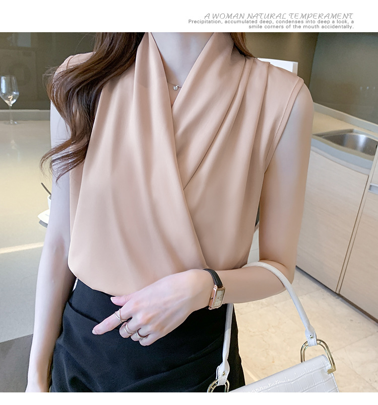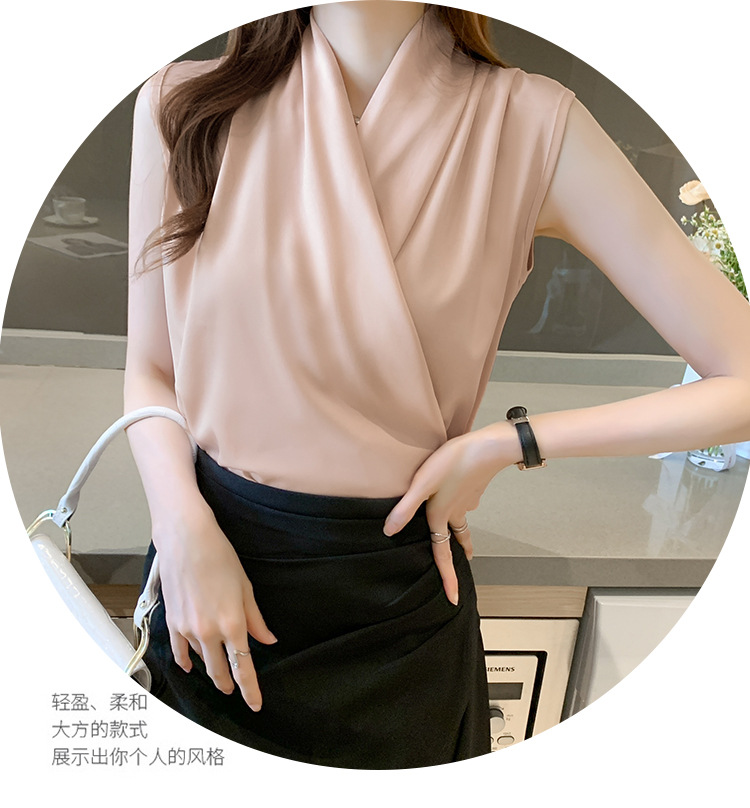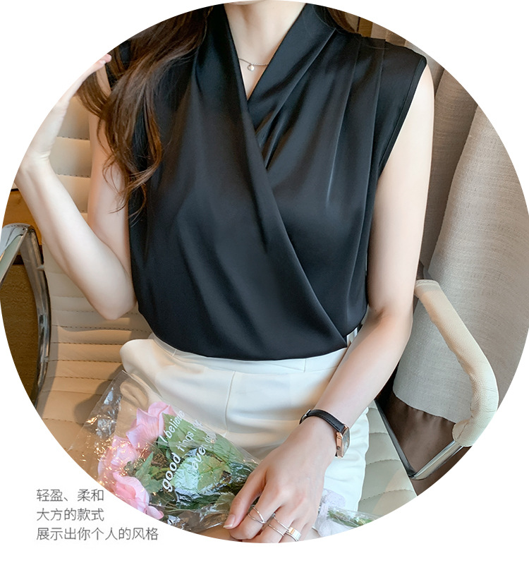 여성용 민소매 캐미솔 셔츠 2026 여름 새틴 V넥 아우터탑, 우아하고 섹시하며 독특하고 스타일리시한 블라우스