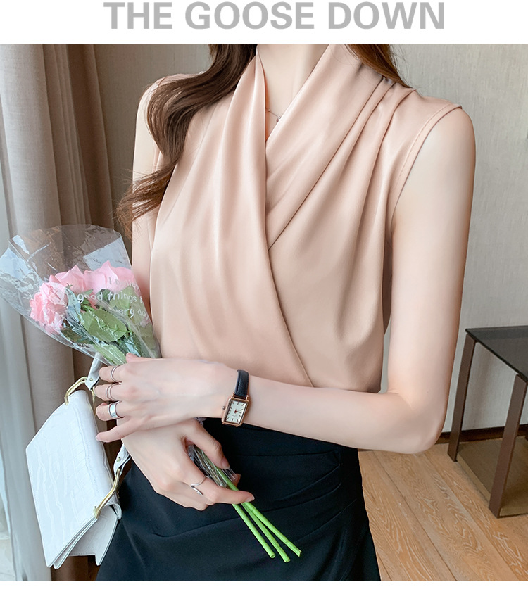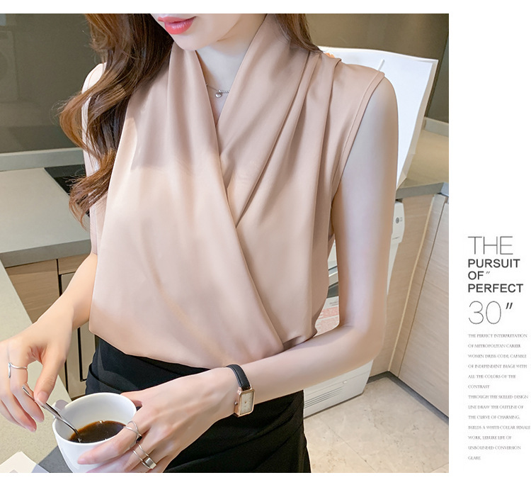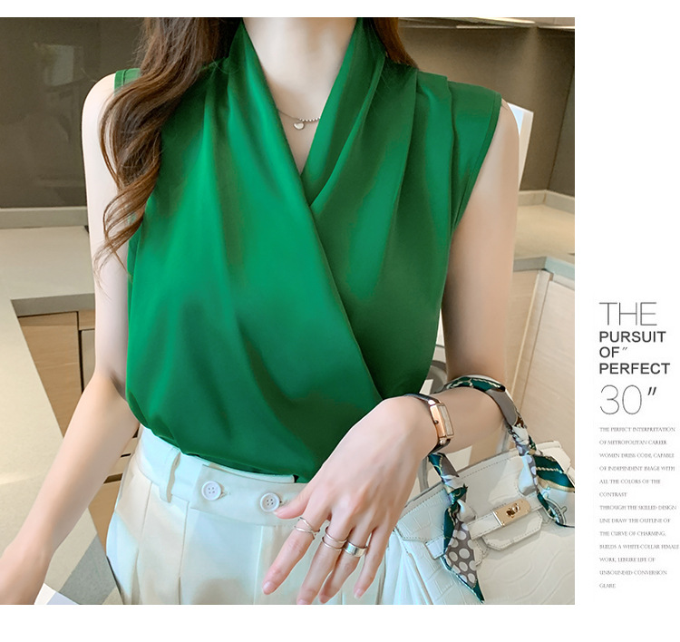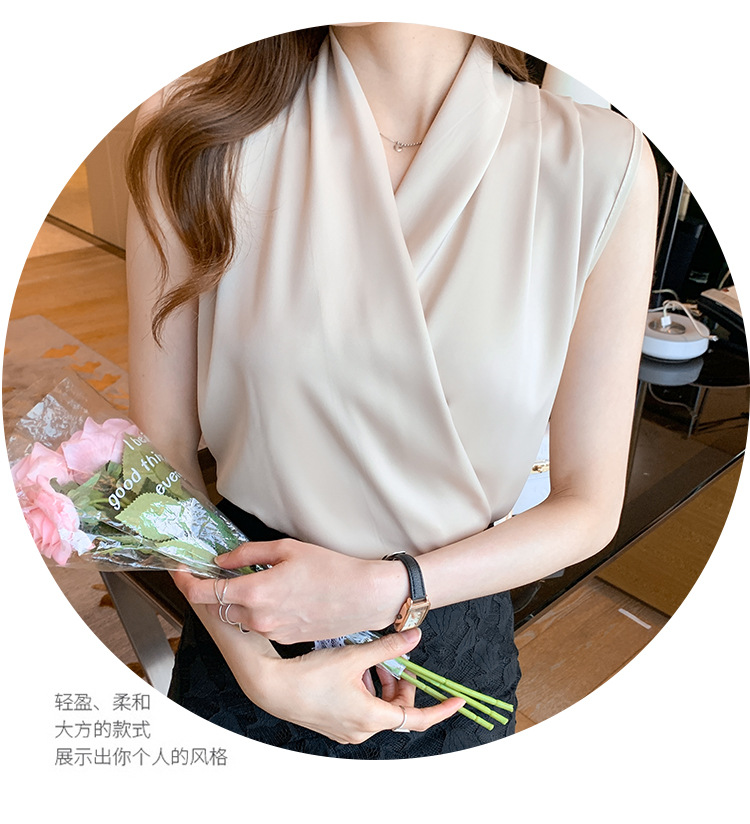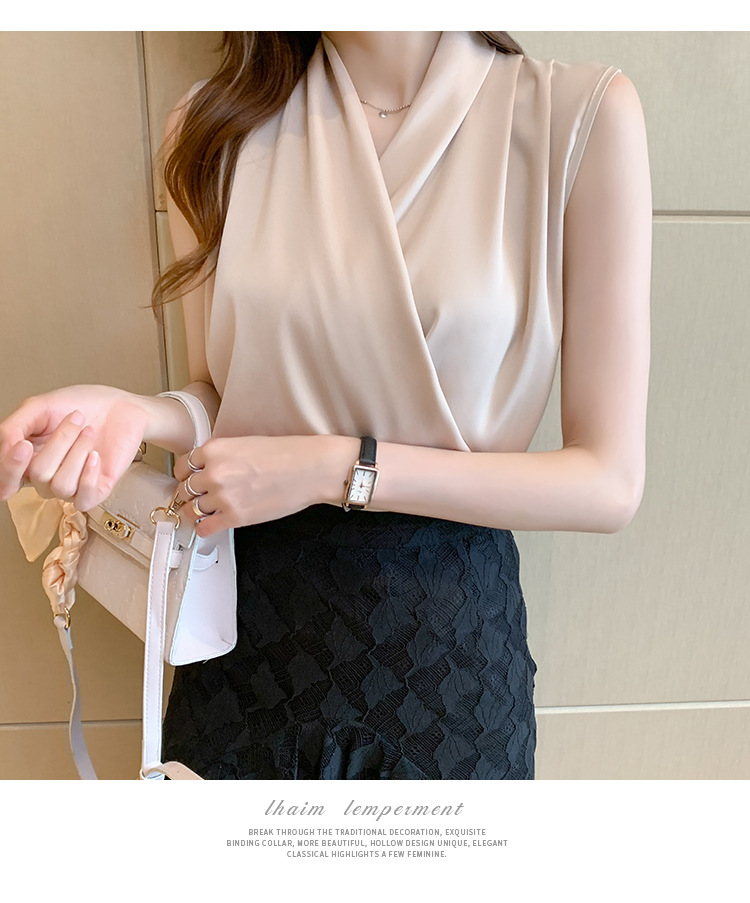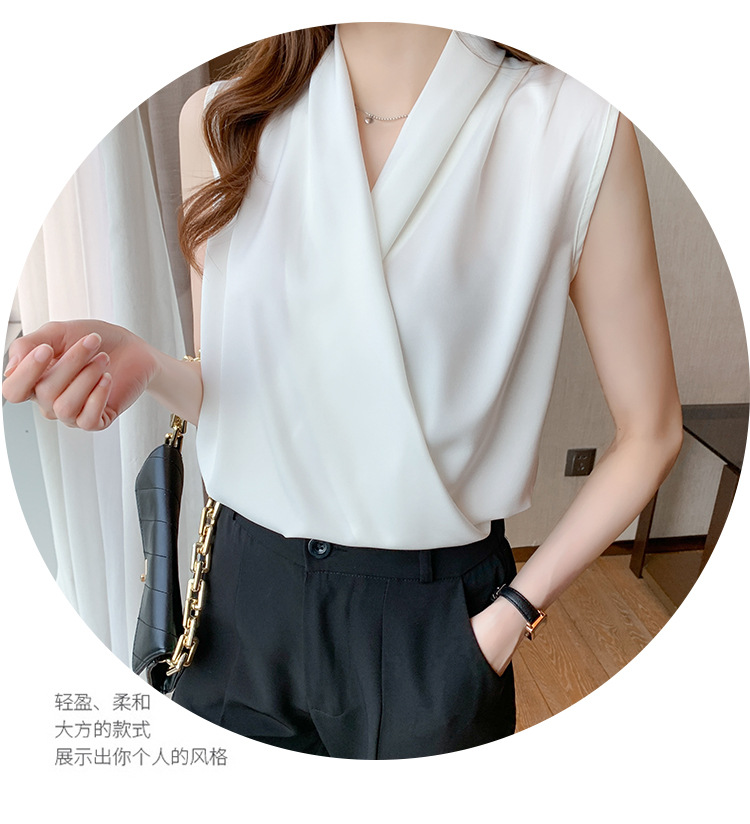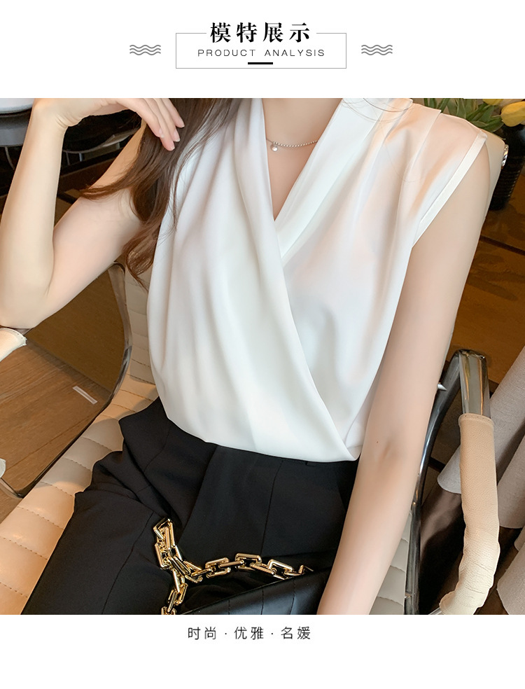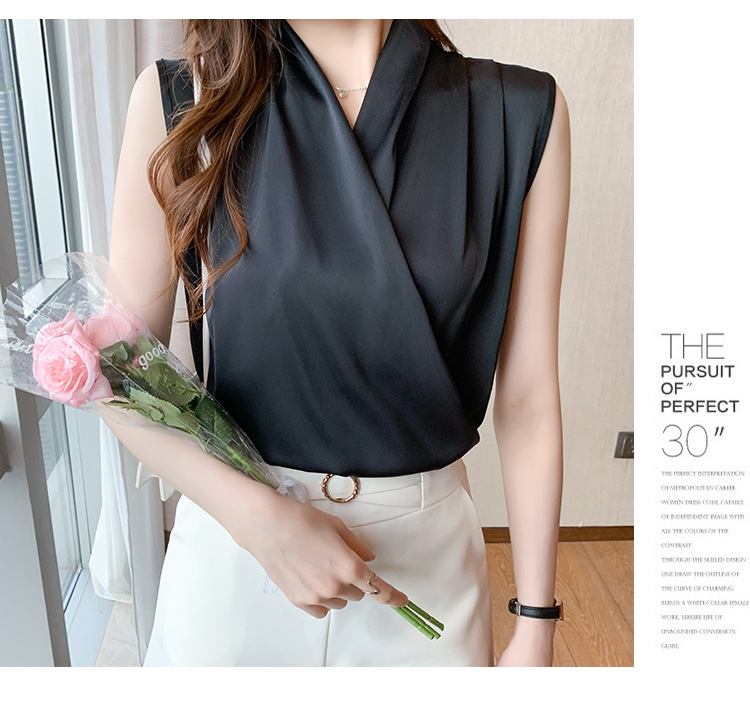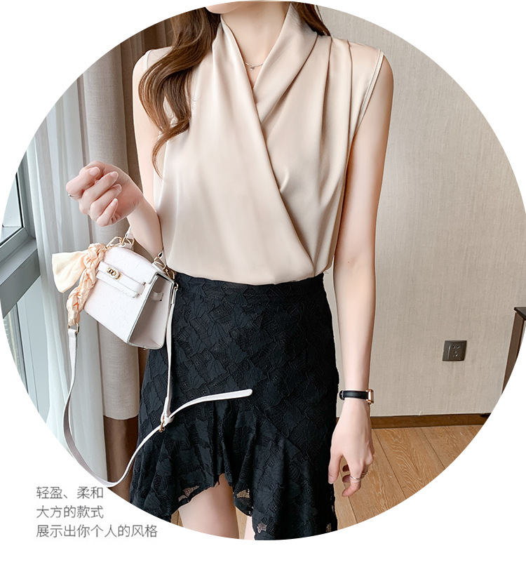 여성용 민소매 캐미솔 셔츠 2026 여름 새틴 V넥 아우터탑, 우아하고 섹시하며 독특하고 스타일리시한 블라우스