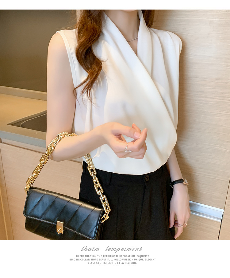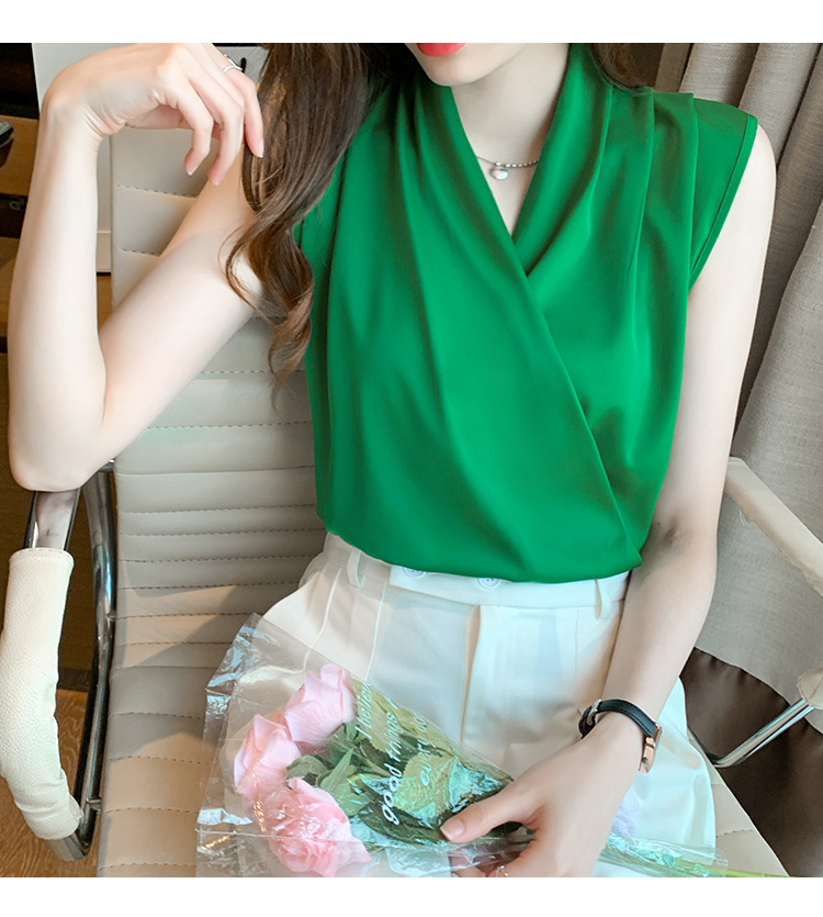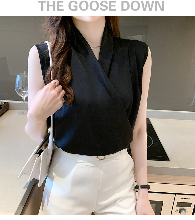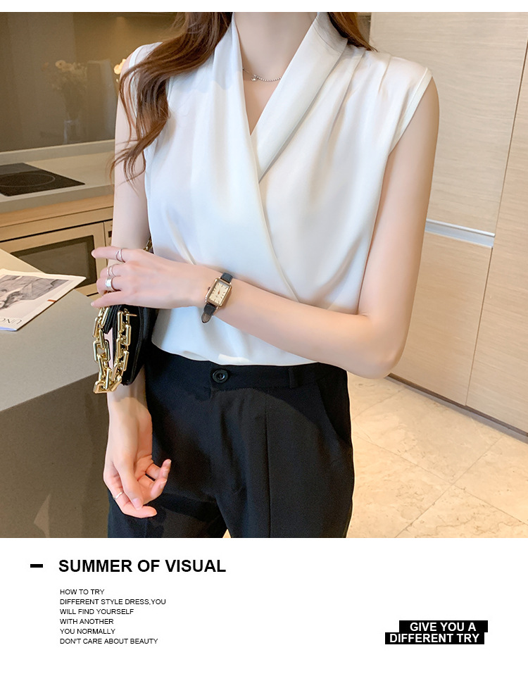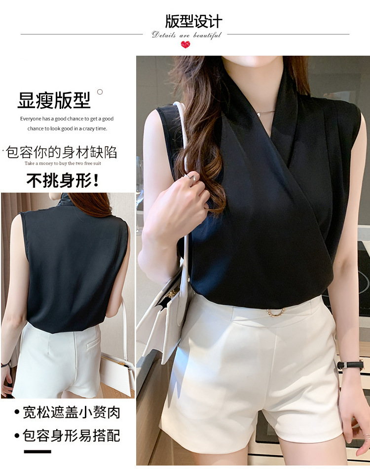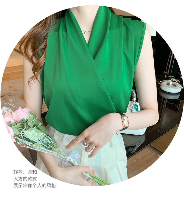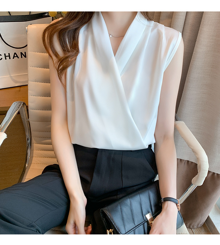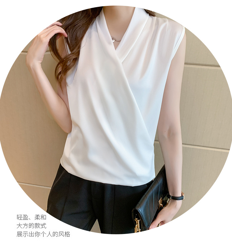 여성용 민소매 캐미솔 셔츠 2026 여름 새틴 V넥 아우터탑, 우아하고 섹시하며 독특하고 스타일리시한 블라우스