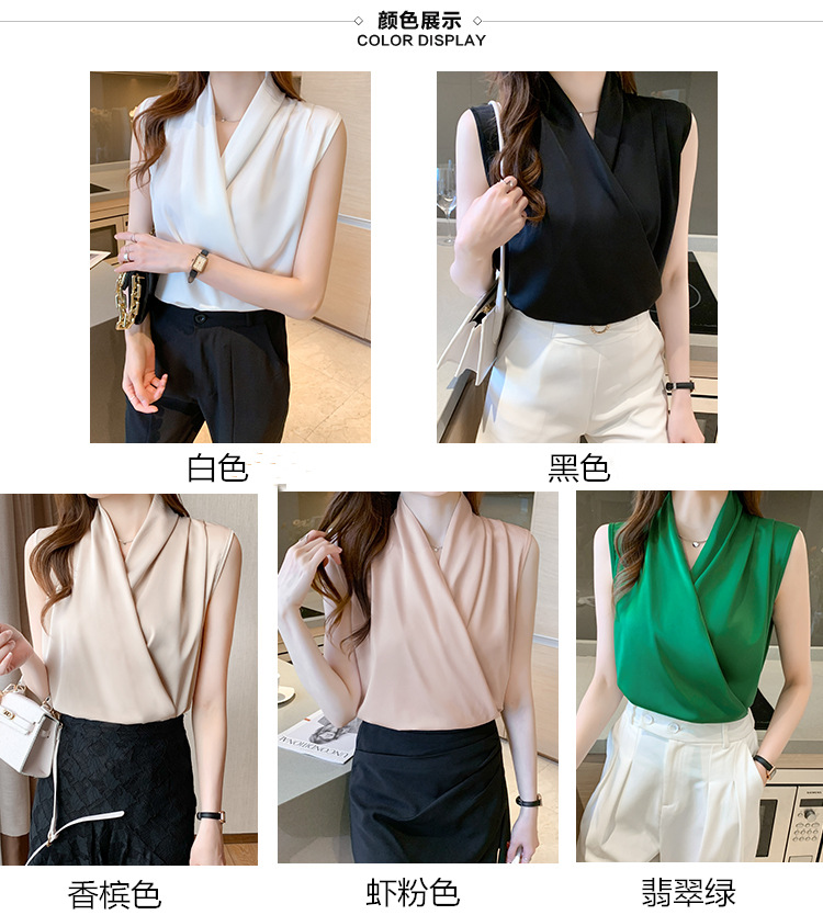 여성용 민소매 캐미솔 셔츠 2026 여름 새틴 V넥 아우터탑, 우아하고 섹시하며 독특하고 스타일리시한 블라우스스토어 가기
