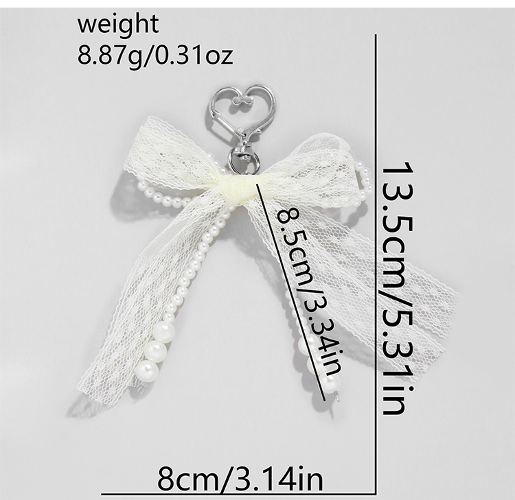 • 베이지색 레이스 모조 진주 열쇠고리 1개