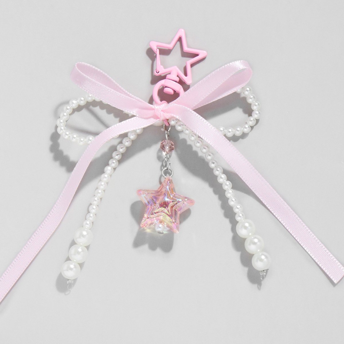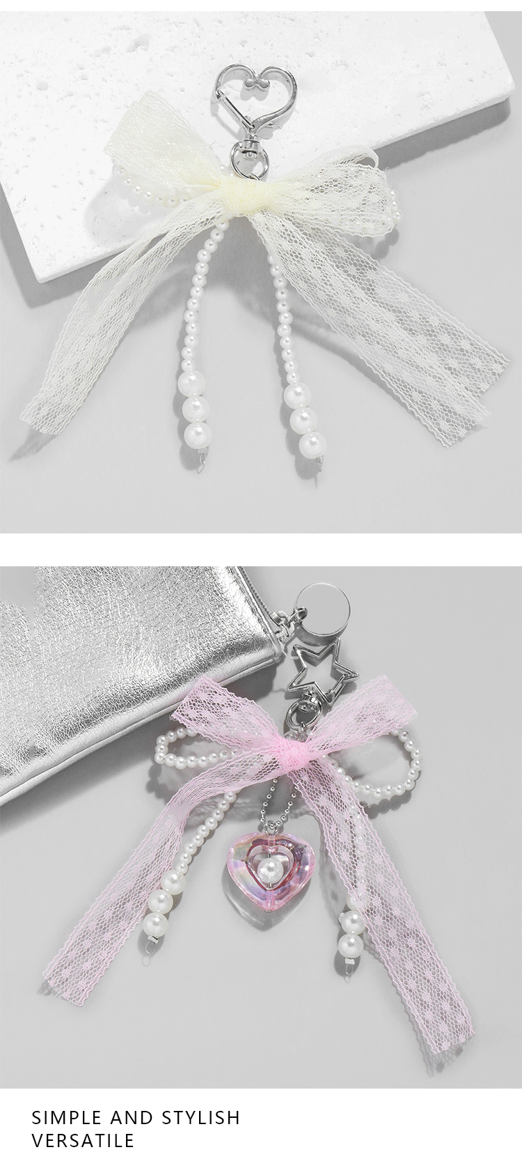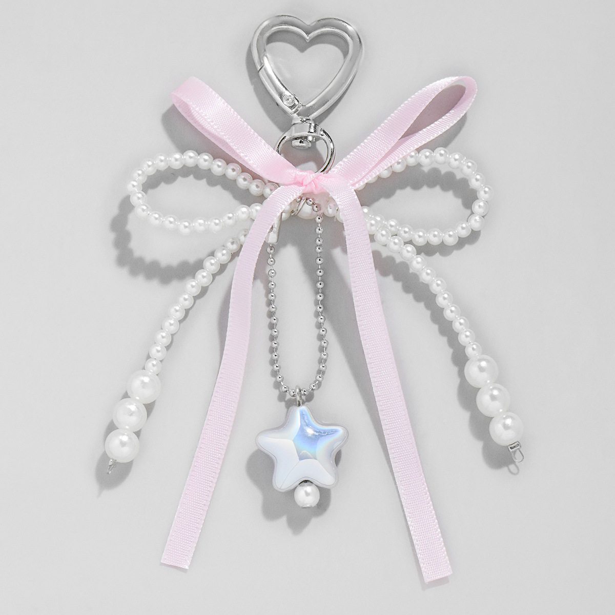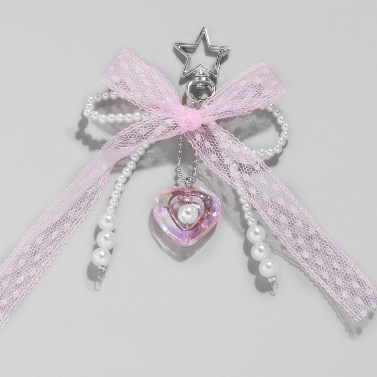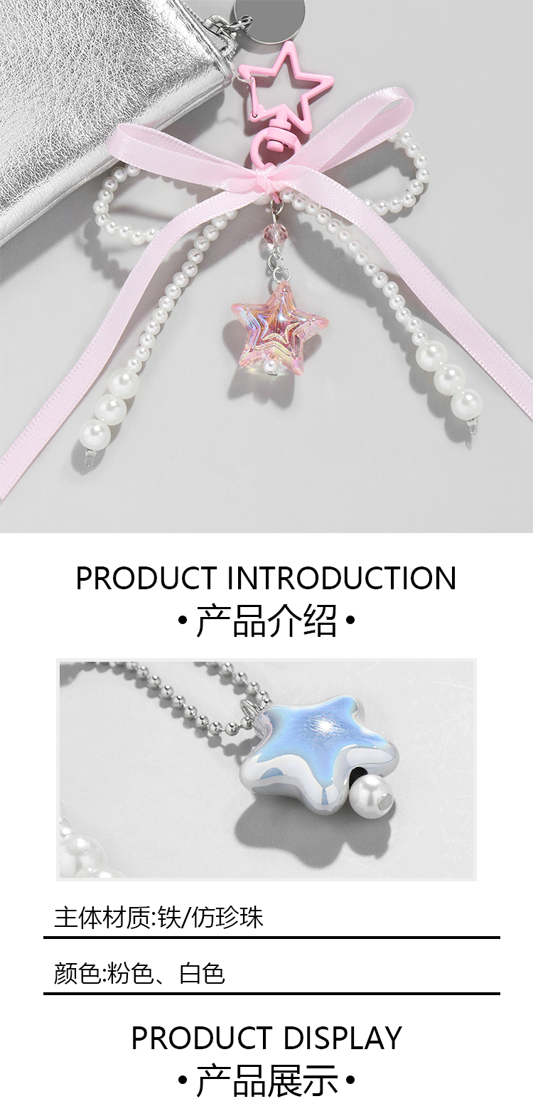 간단한 달콤한 귀여운 핑크 레이스 모방 진주 활 사랑 스타 펜던트 백 펜던트 키 체인