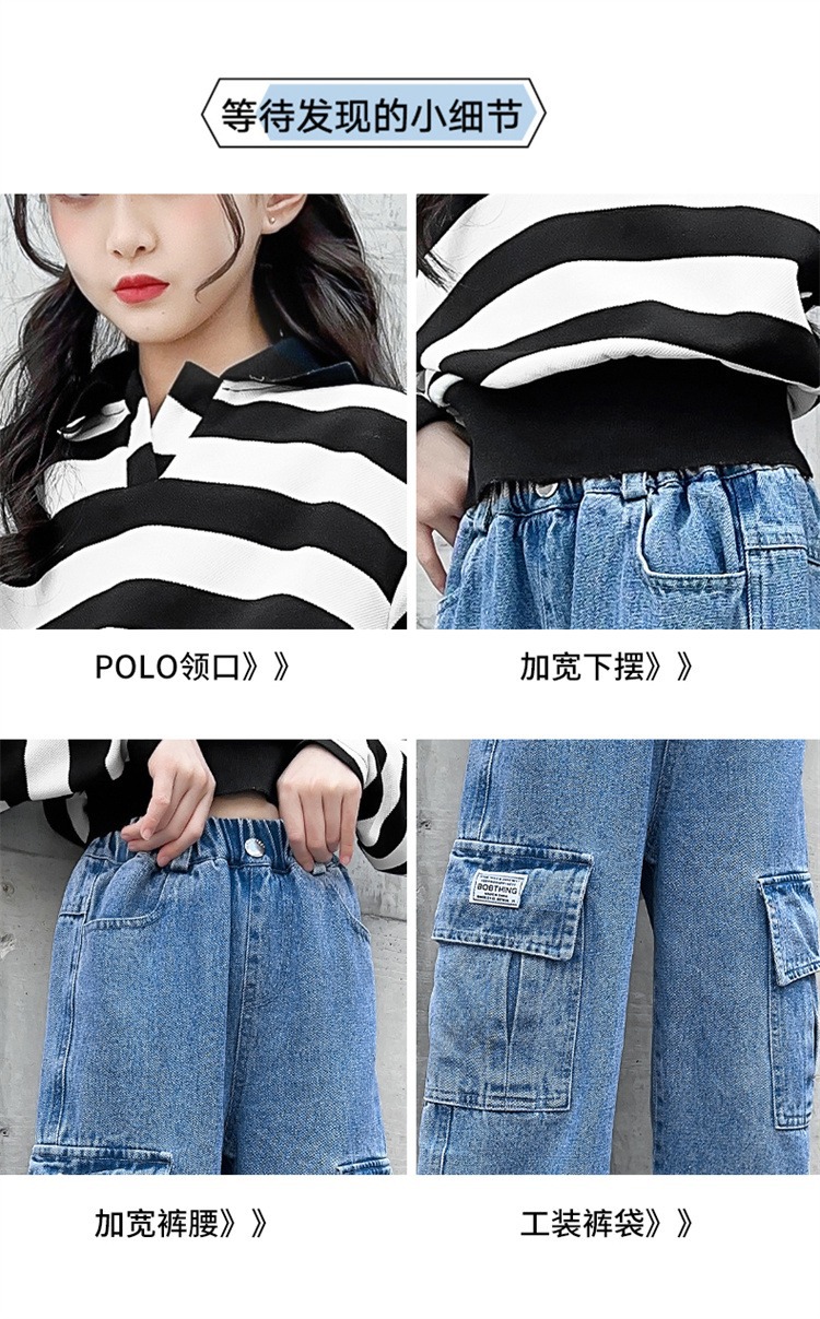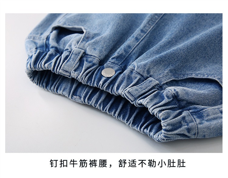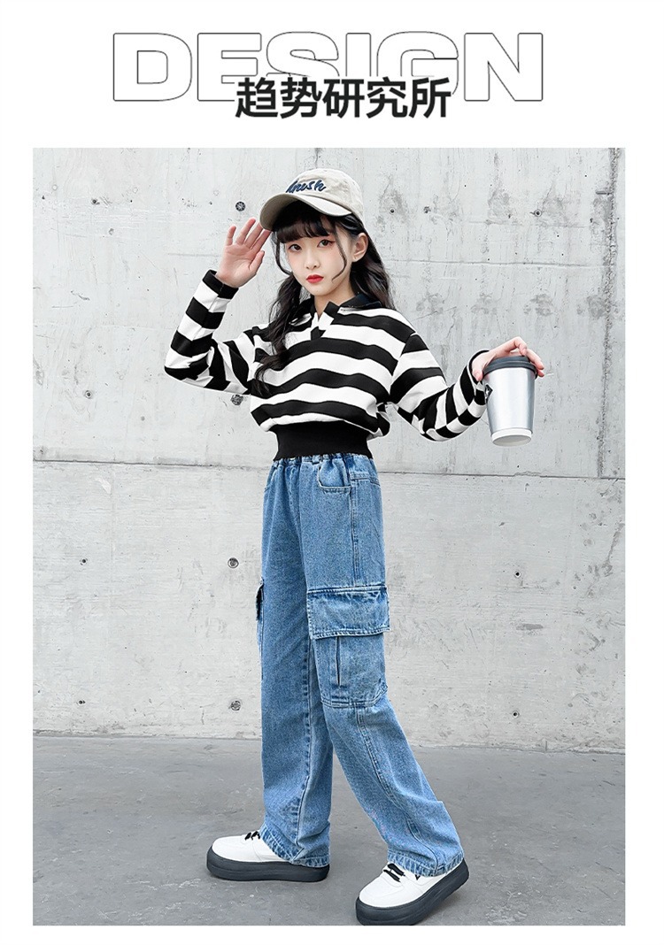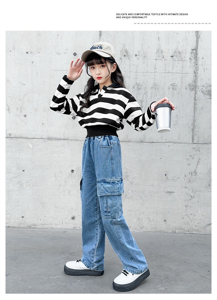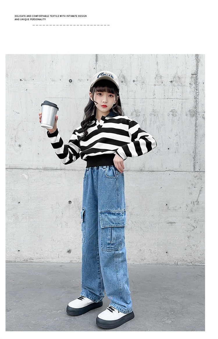 어린 소녀 데님 작업복 넓은 다리 바지 소스 공장 도매 중대형 어린이 느슨한 바지 소녀 스트레이트 다리 바지