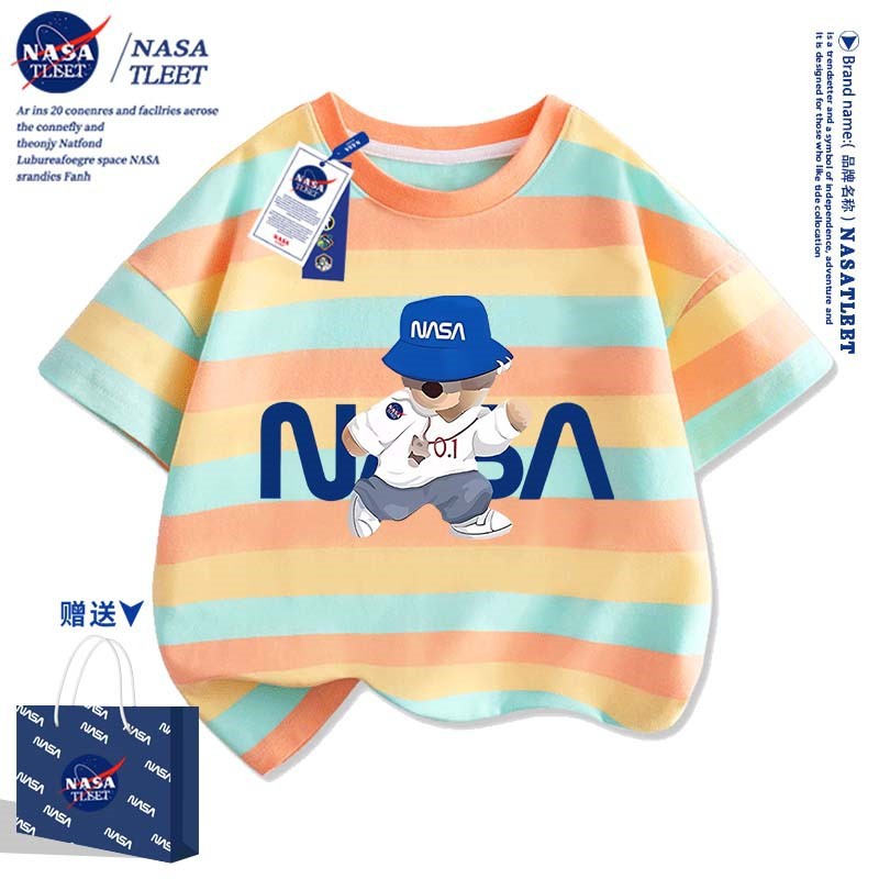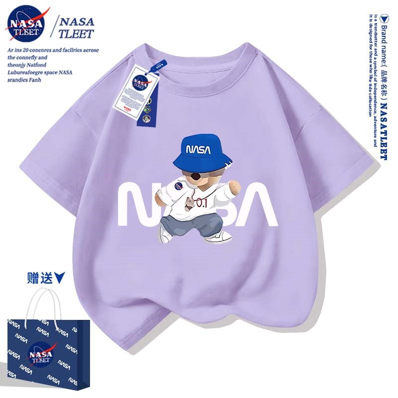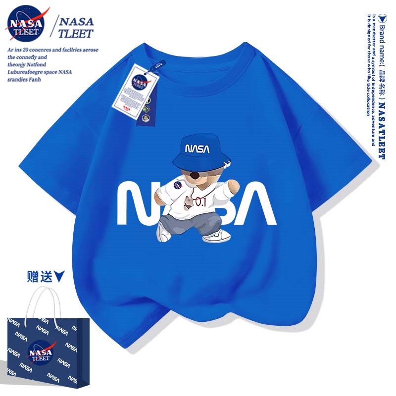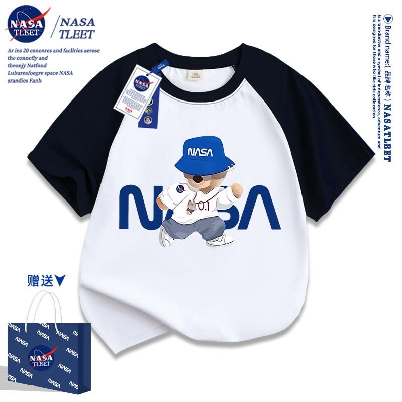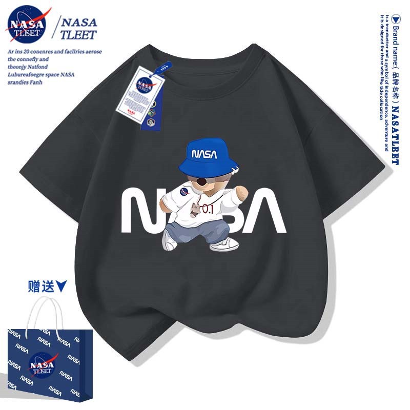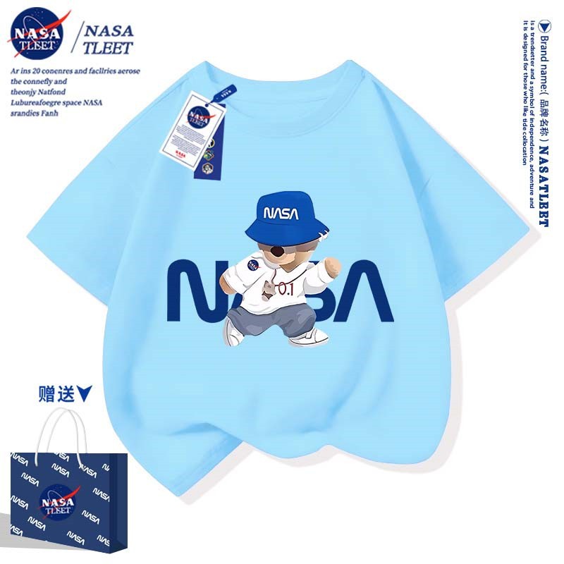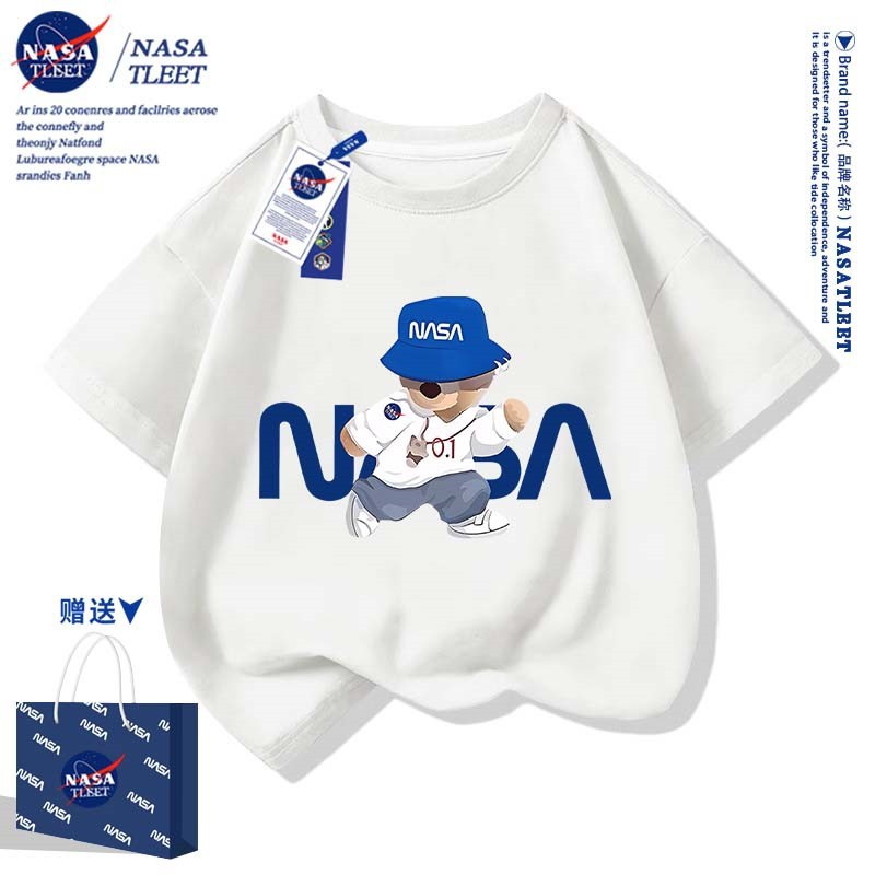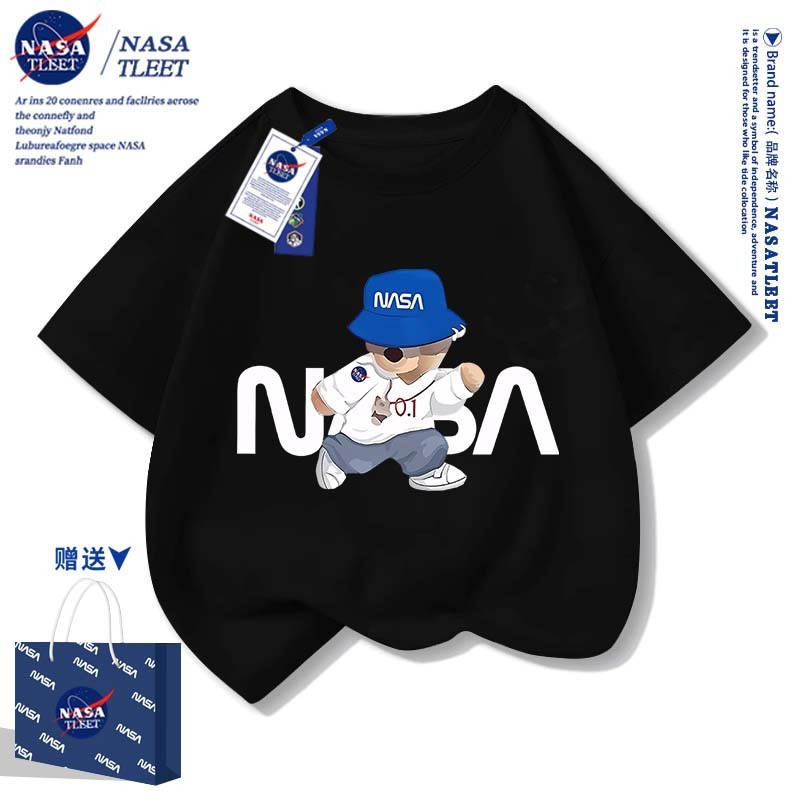 NASA 공동 브랜드 새로운 트렌디 브랜드 베어 프린트 퓨어 코튼 반팔 여름 올 매치 라운드 넥베이스 셔츠 간단한 티셔츠 쿨