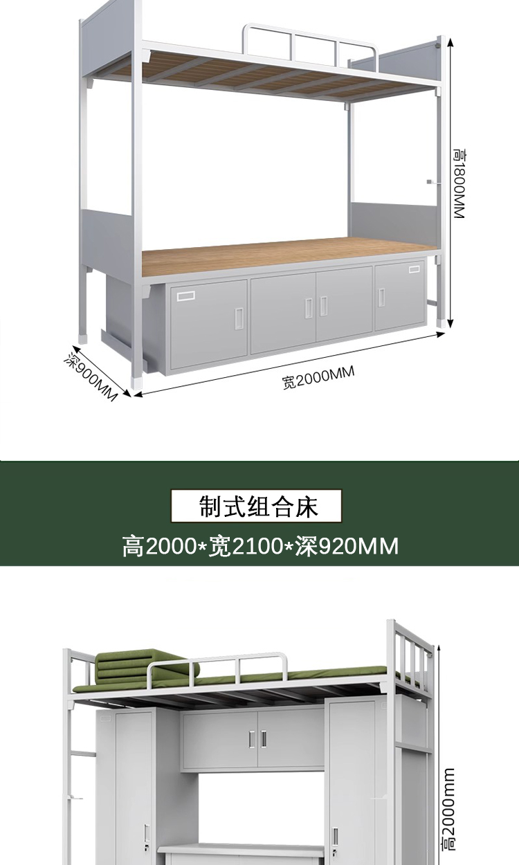 Ft 표준 이층 침대 더블 레이어 철 프레임 침대 기숙사 싱글 침대 간부 싱글 침대 하우스 캐비닛 스터디 테이블