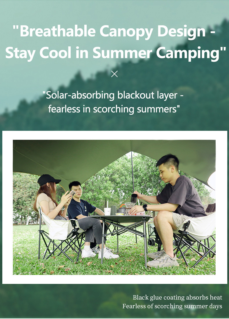 캠핑용 텐트, 야외 텐트, 휴대용 캠핑 및 피크닉 장비, 블랙글루 실버 코팅 자외선 차단 나비형 육각형 차양막