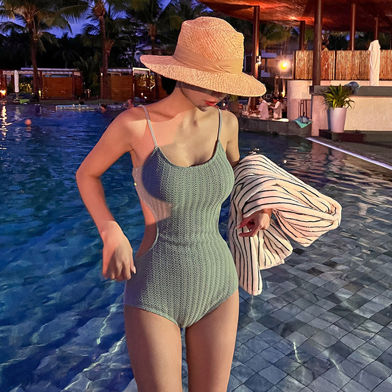 2024 새로운 트라이앵글 원피스 수영복 여성 섹시 슬림 비치 홀리데이 온천 수영복 여성 [헤어 세대]