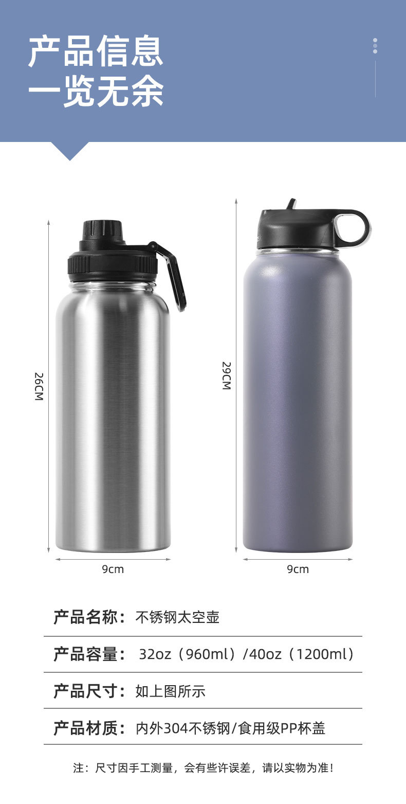 국경을 넘는 아마존 유럽 및 미국 물컵 우주병 304 스테인레스 스틸 이중층 진공 휴대용 보온병 컵