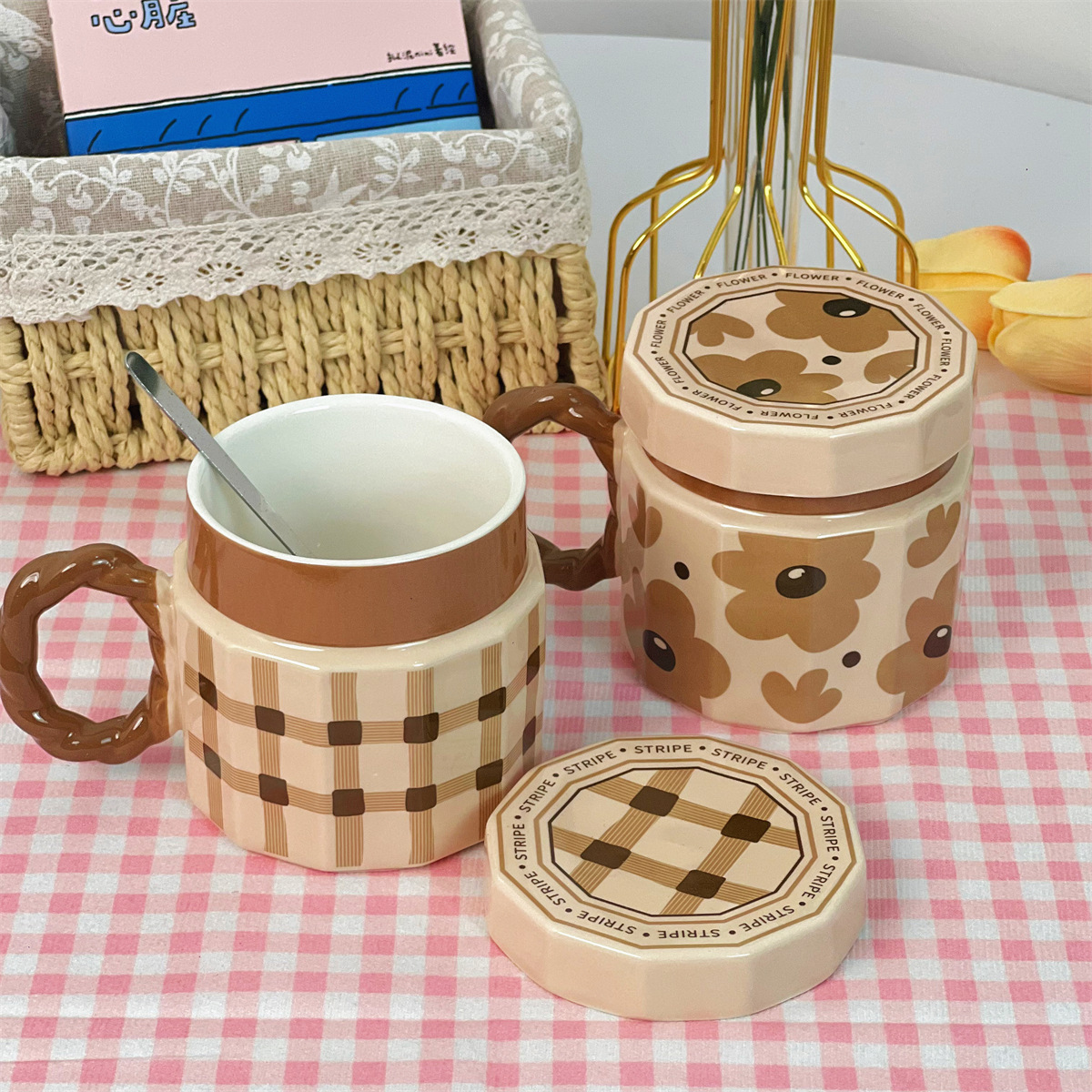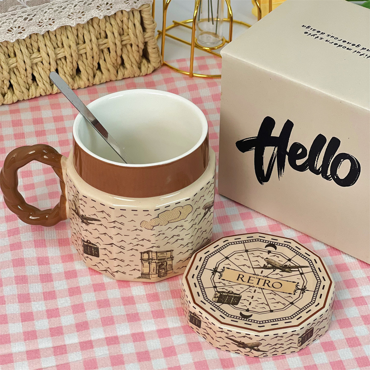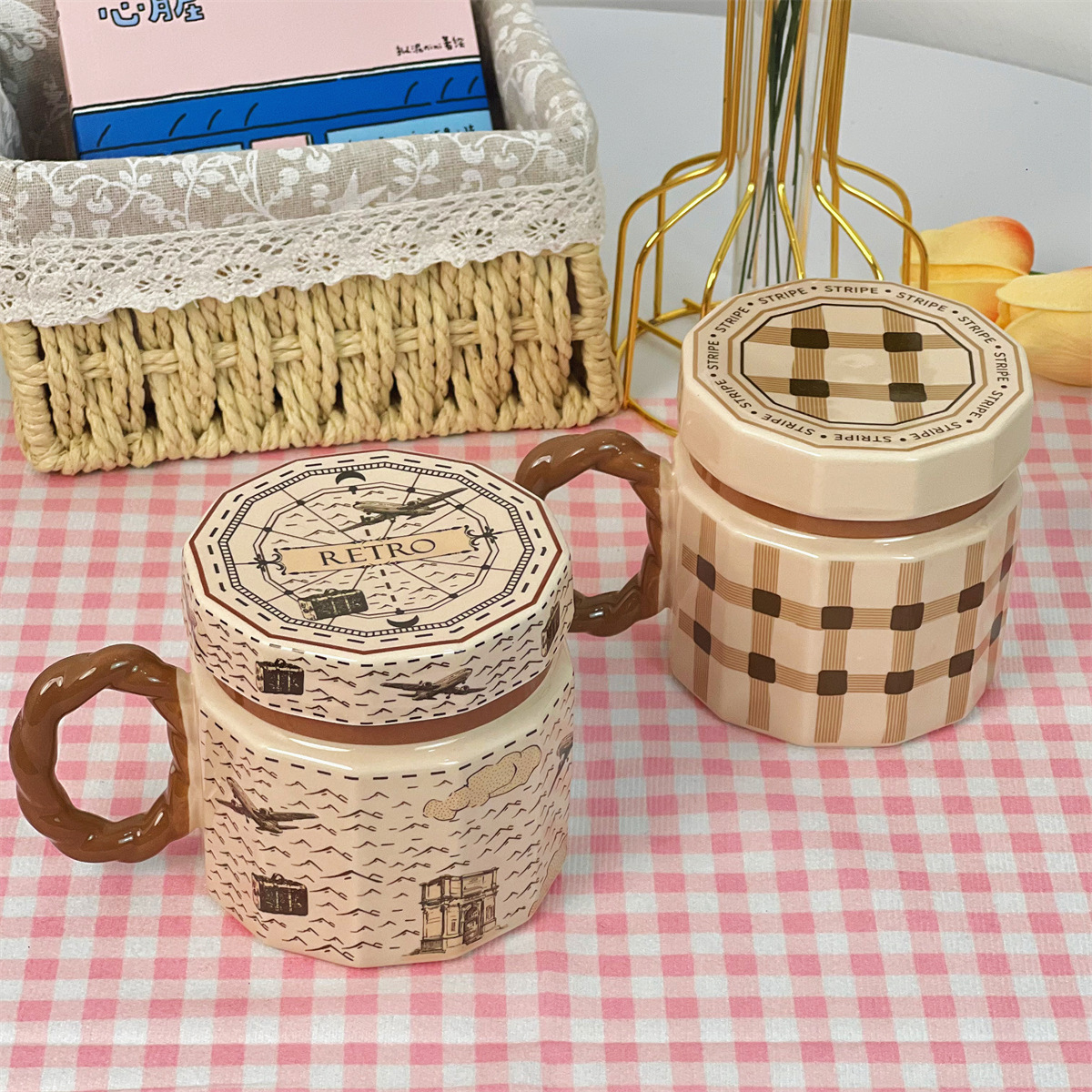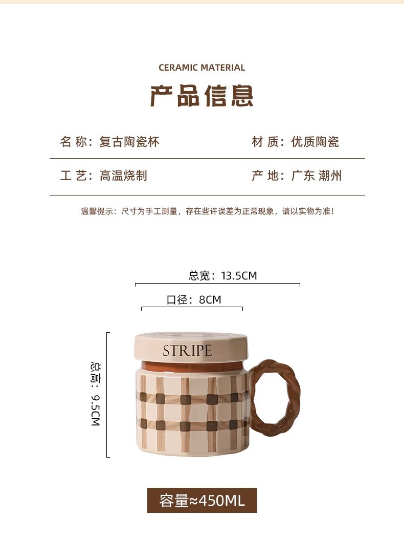 단일 제품-뚜껑이있는 복고풍 세라믹 머그잔 창조적 인 고가의 소녀 가정용 물 컵 실용적인 선물