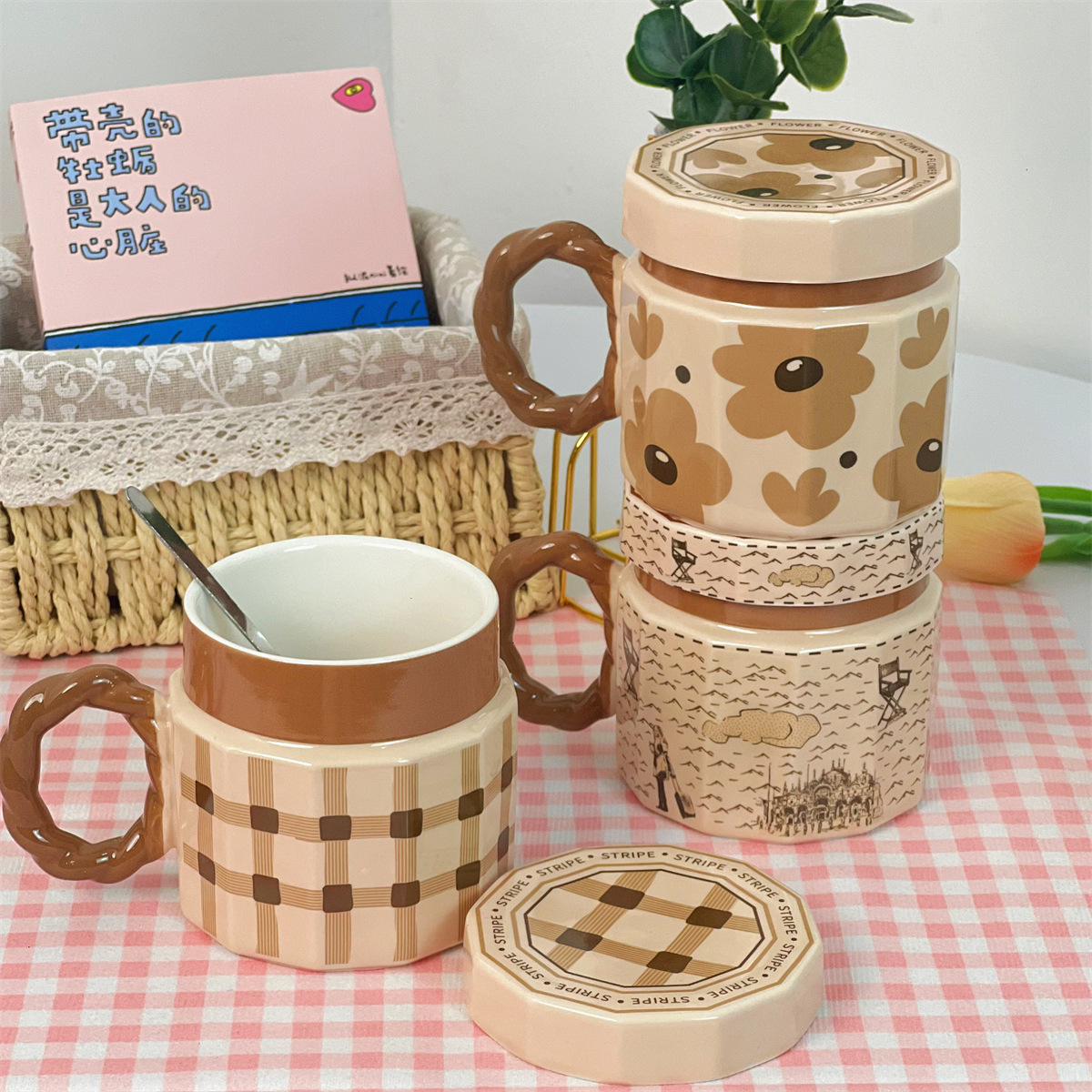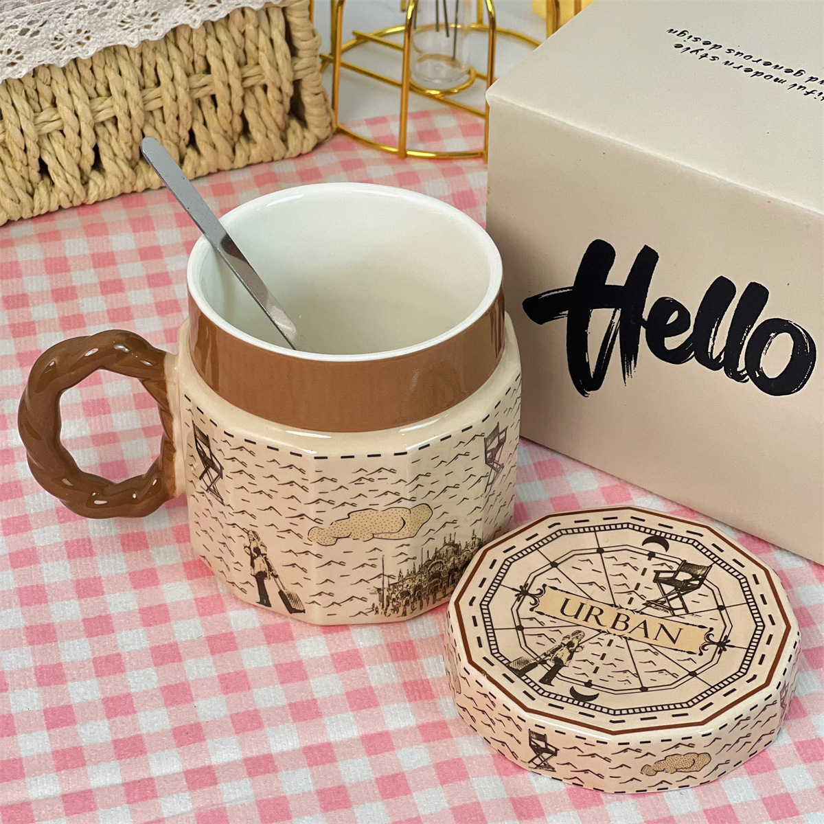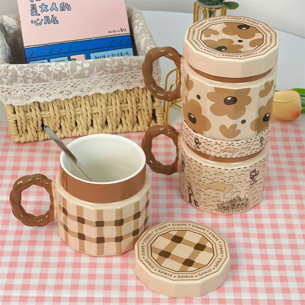단일 제품-뚜껑이있는 복고풍 세라믹 머그잔 창조적 인 고가의 소녀 가정용 물 컵 실용적인 선물
