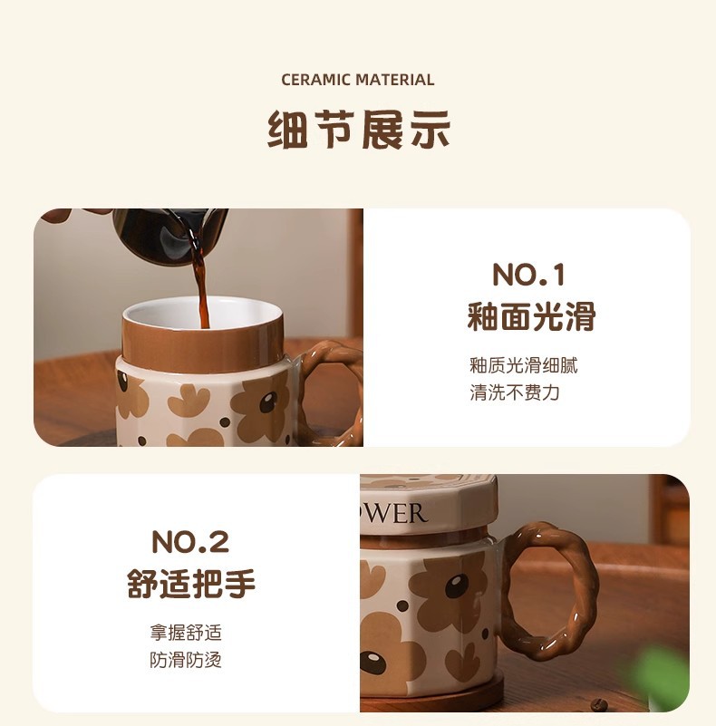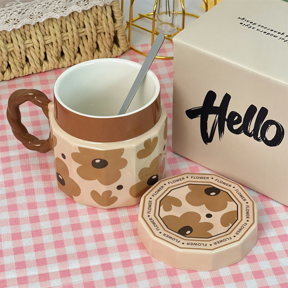 단일 제품-뚜껑이있는 복고풍 세라믹 머그잔 창조적 인 고가의 소녀 가정용 물 컵 실용적인 선물스토어 가기