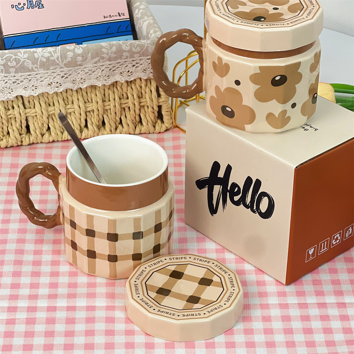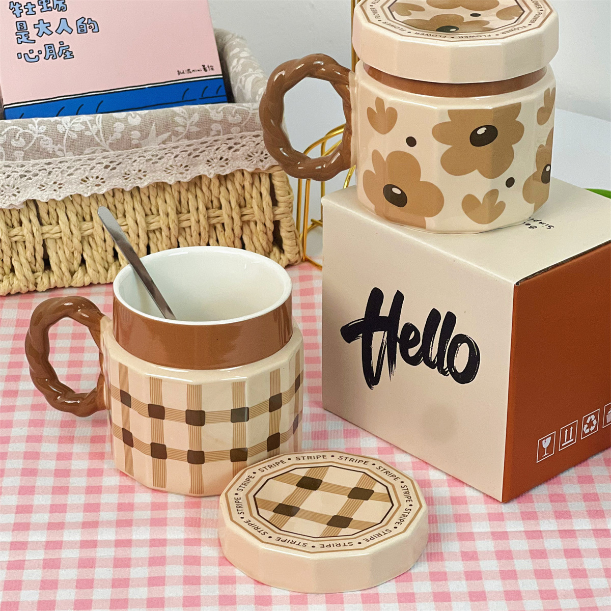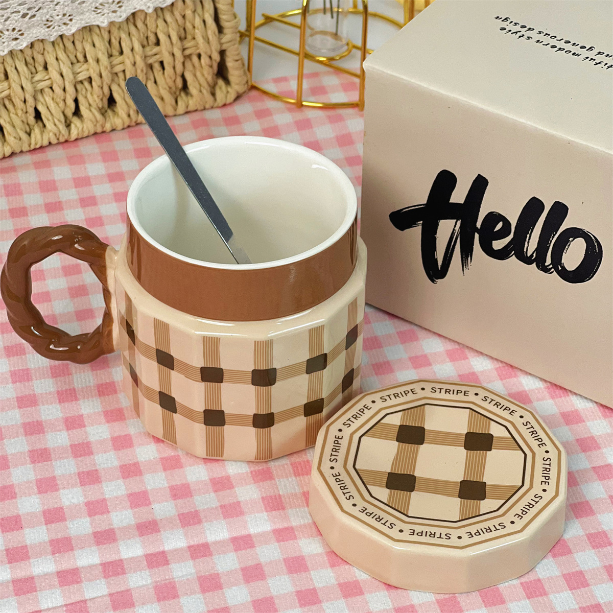 • 빈티지 체크 컵 뚜껑