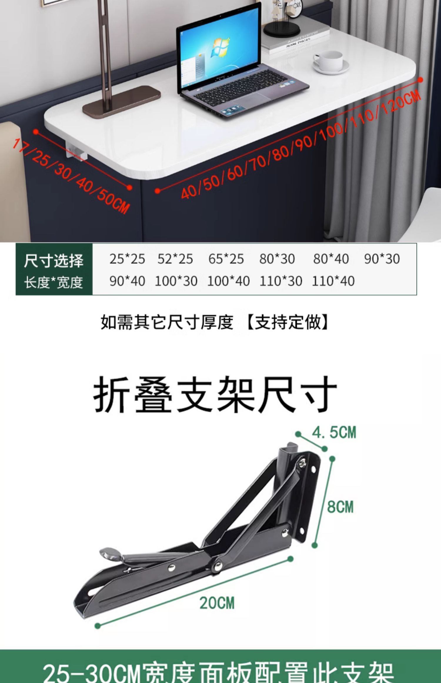 • γααααγ80x30CM 흰색 일반 보드 + 접이식 브래킷 2개 γααααγ