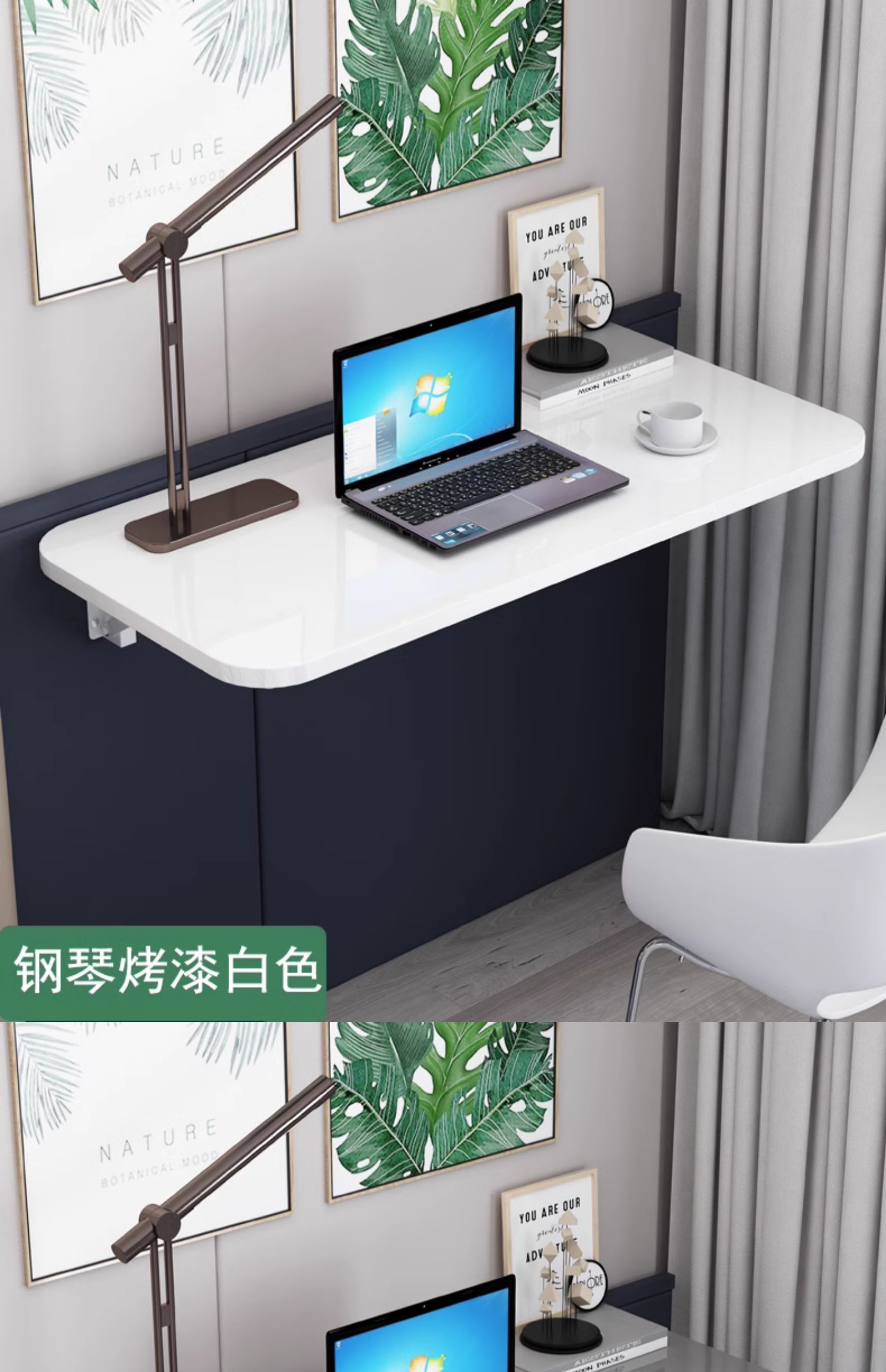 • γααααγ120x40CM 흰색 피아노 페인트 보드 + 접이식 브래킷 2개 γααααγ