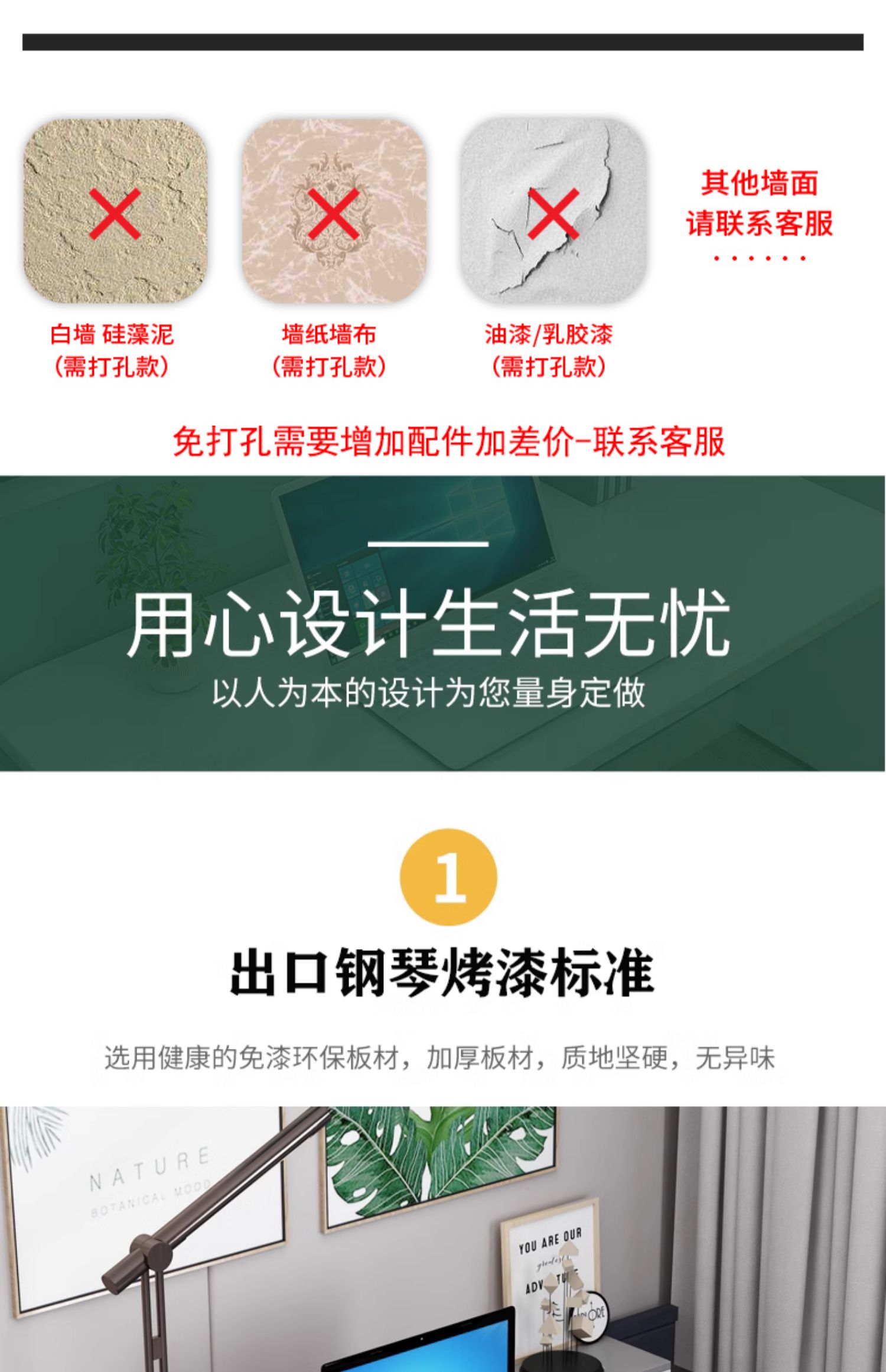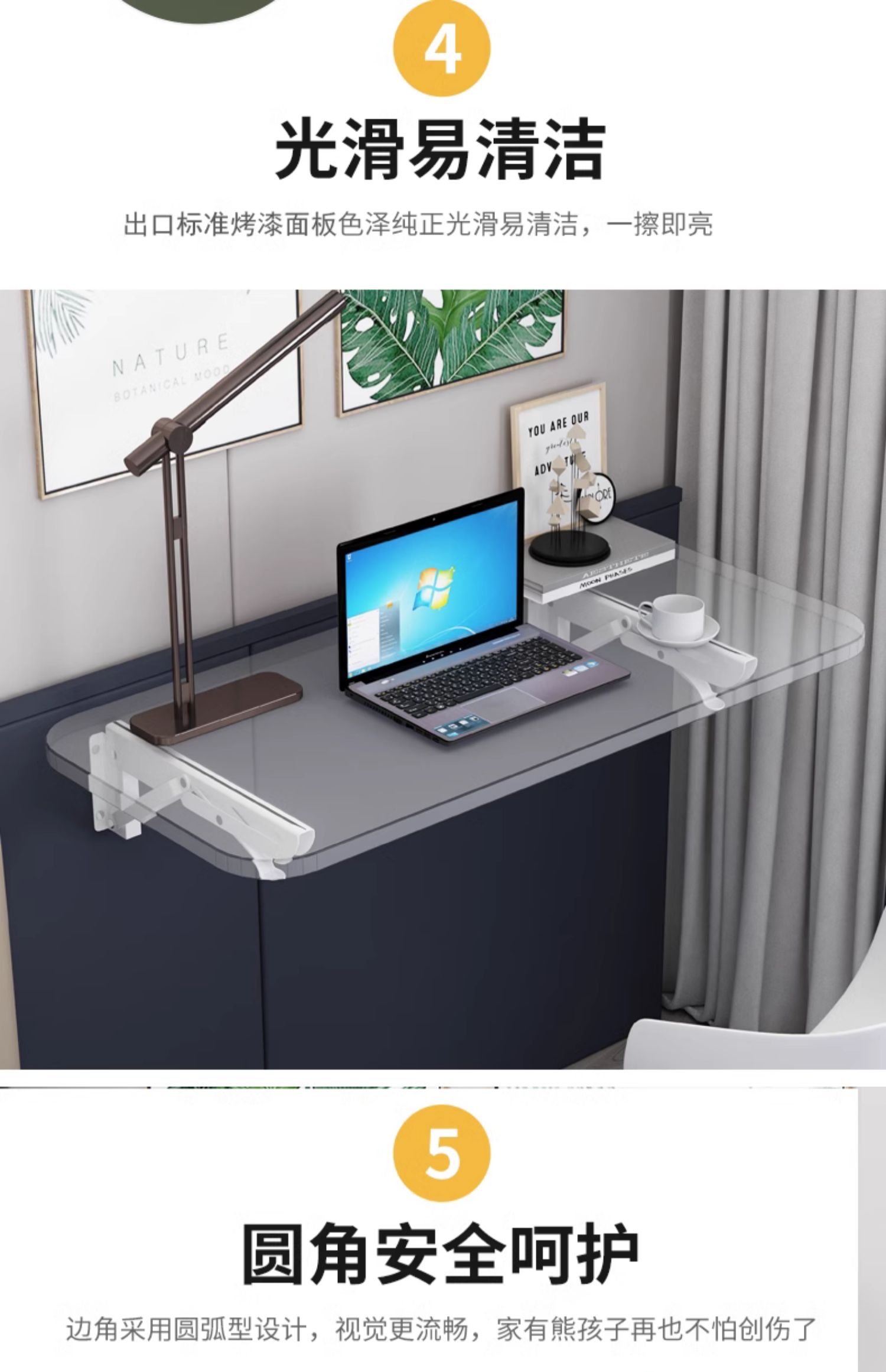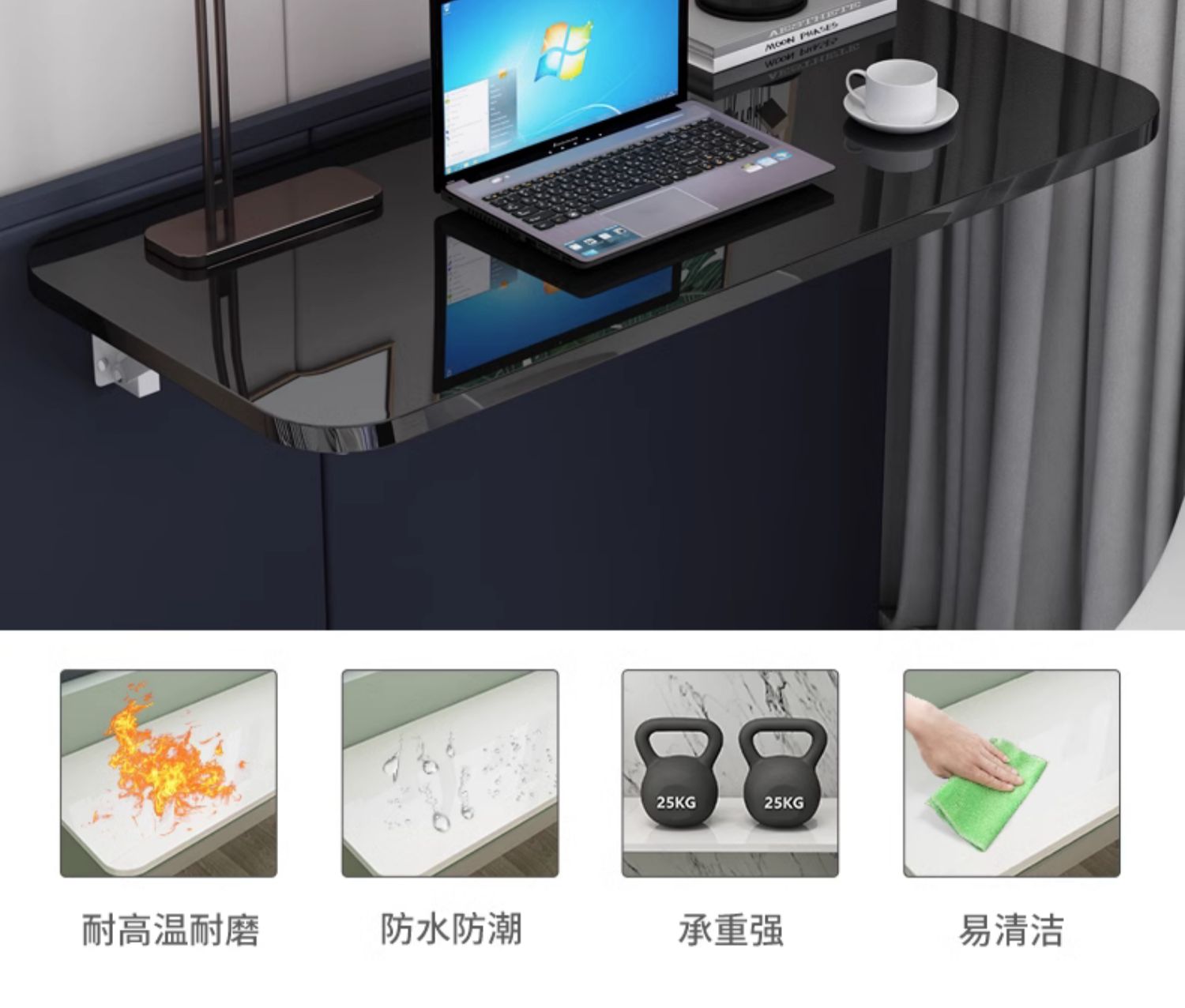 • γααααγ90x40CM 검정색 피아노 페인트 보드 + 접이식 브래킷 2개 γααααγ
