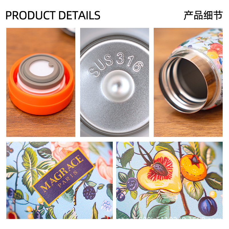 프랑스 MAGRACE 빛나는 Qihua 4 미니 보온병 220ml 원래 패턴 홈 스테인레스 스틸 컵스토어 가기