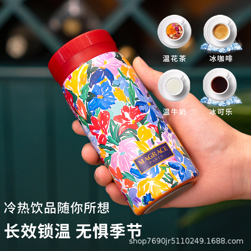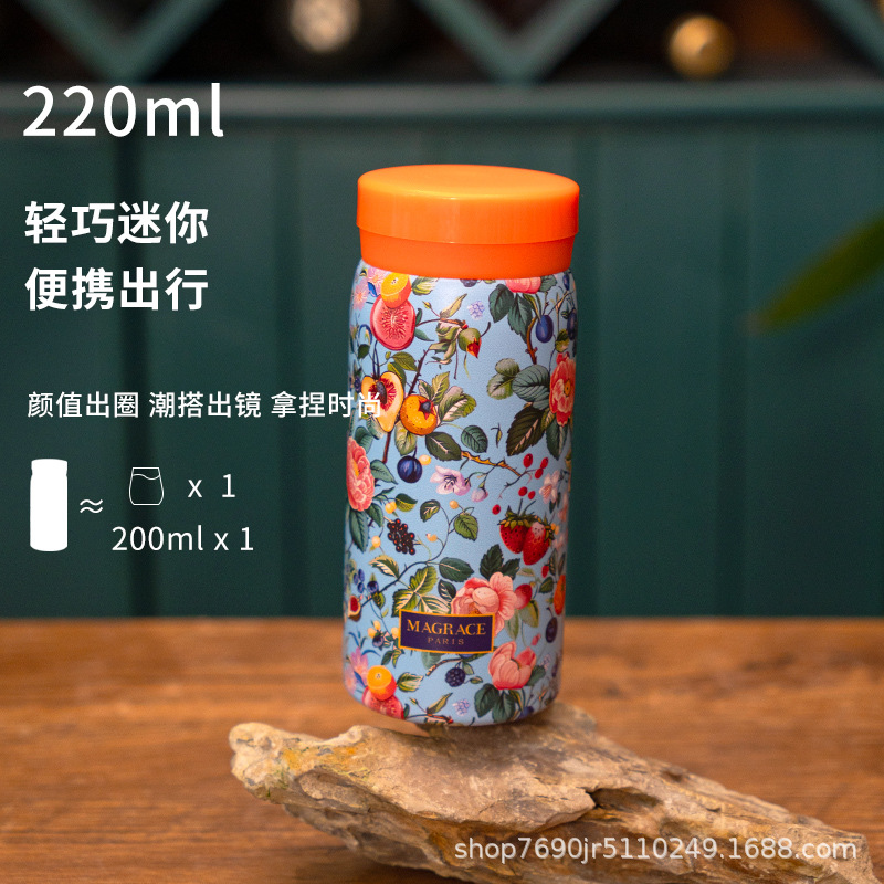 프랑스 MAGRACE 빛나는 Qihua 4 미니 보온병 220ml 원래 패턴 홈 스테인레스 스틸 컵