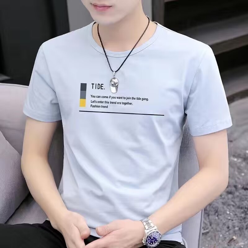 하이 엔드 아이스 실크 남자 반팔 티셔츠 여름 트렌디 올매치 핸섬 2024 새로운 도착 반소매 티셔츠 한국 탑스토어 가기