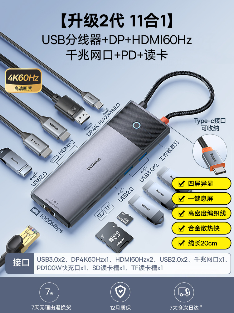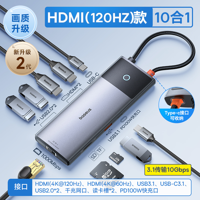 Beisi 금속 마이크로 라이트 2 세대 Typec 확장 도크 확장 데스크톱 컴퓨터, 노트북 및 휴대 전화 전송에 적합스토어 가기