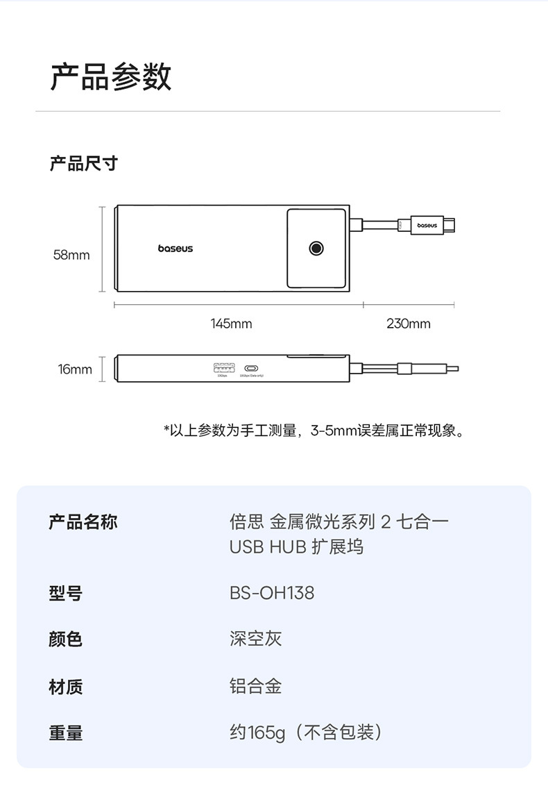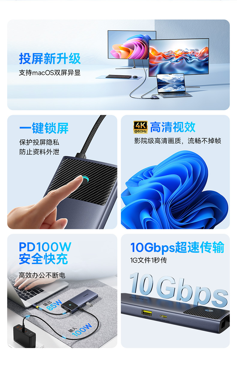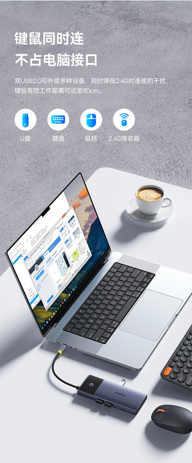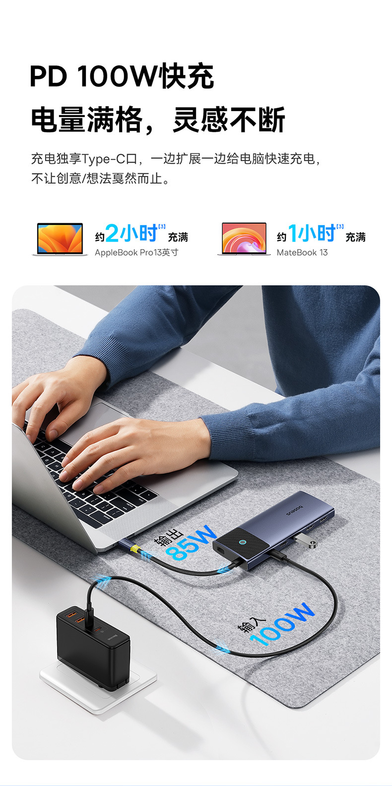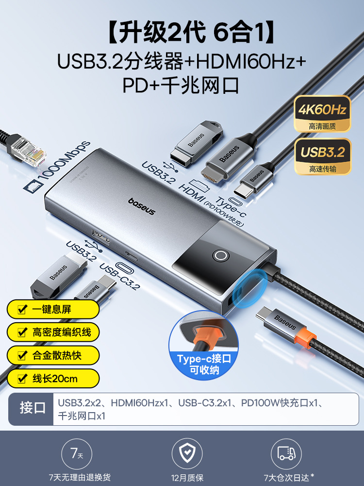 Beisi 금속 마이크로 라이트 2 세대 Typec 확장 도크 확장 데스크톱 컴퓨터, 노트북 및 휴대 전화 전송에 적합