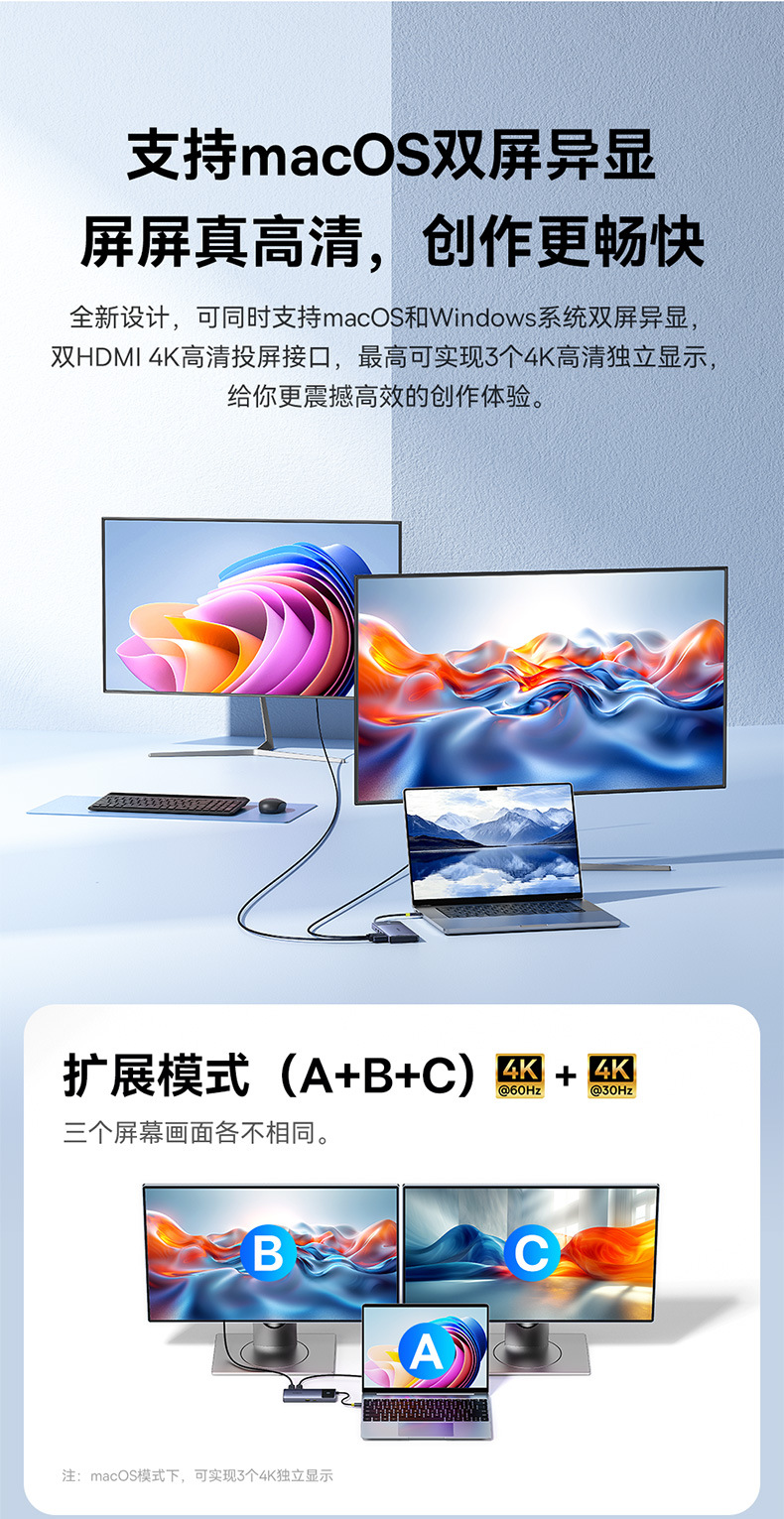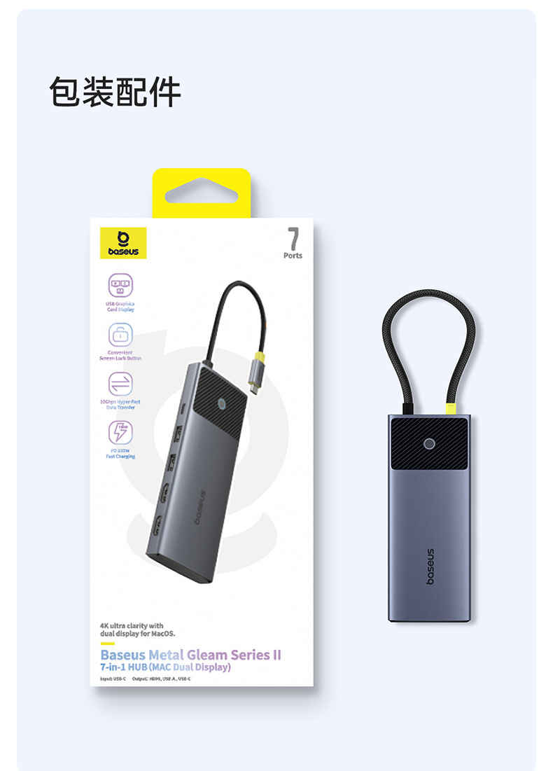 • 금속 빛 시리즈 2 7-in -1 USB 허브 도킹 스테이션 (MAC 듀얼 디스플레이)