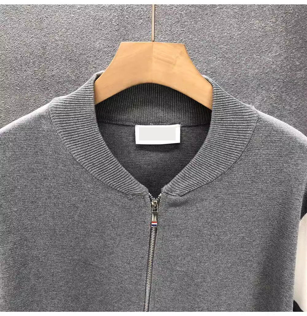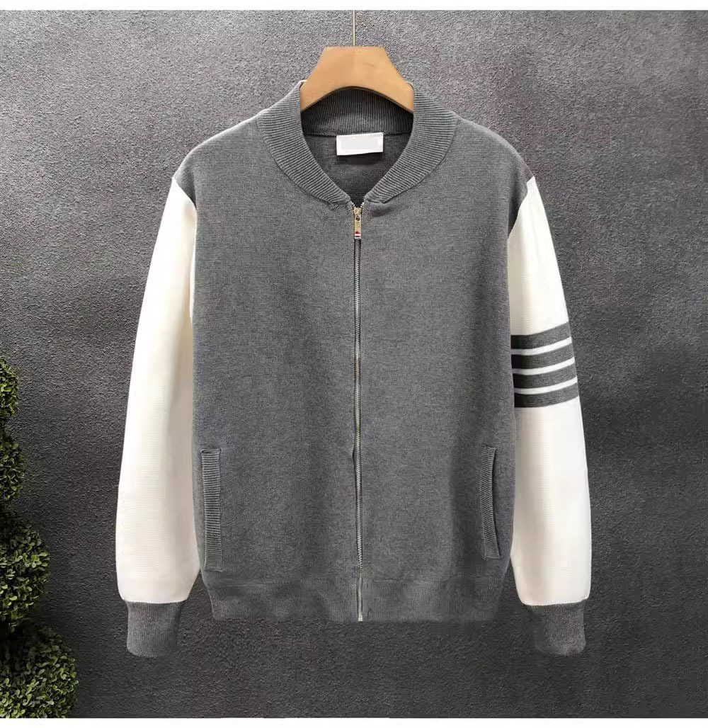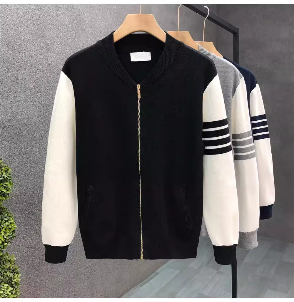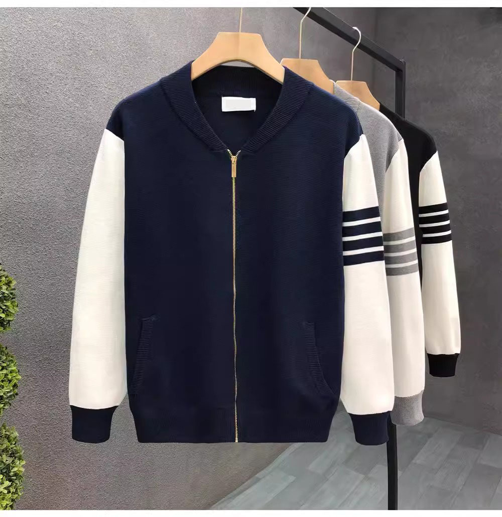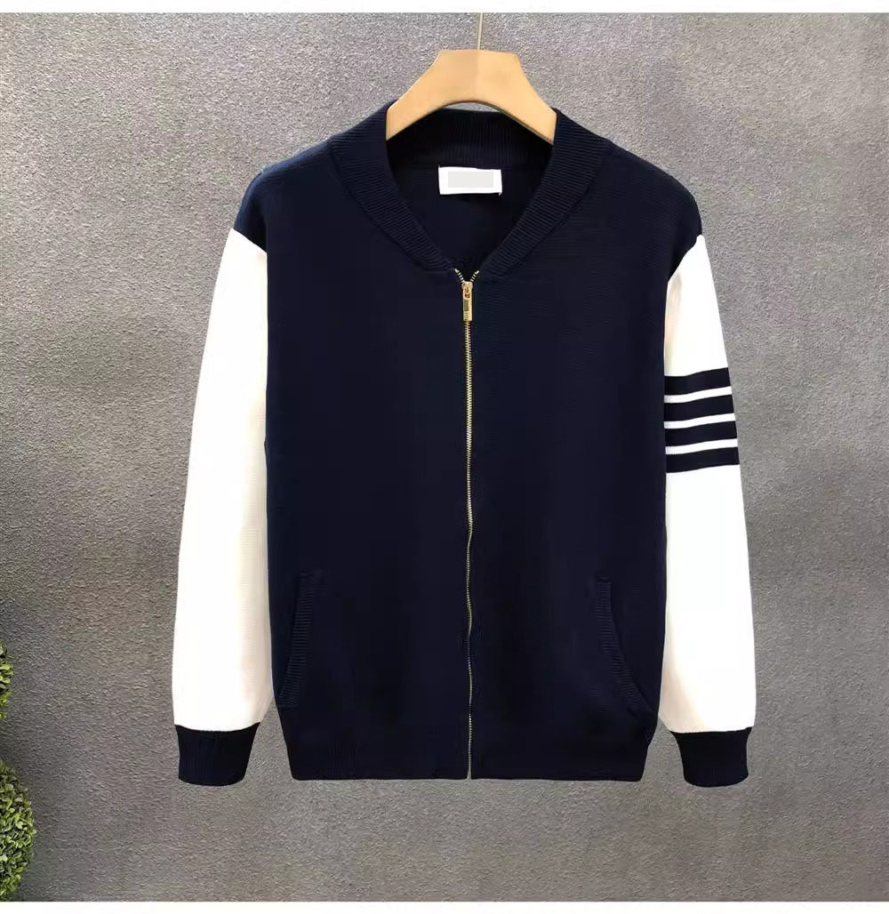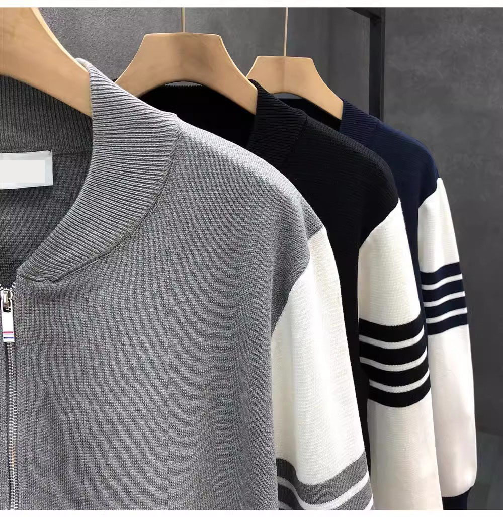 니트 스웨터 재킷 긴팔 남성용 2026 봄 가을 신상 남성용 가디건 다림질 필요 없는 심플 캐주얼 스트라이프스토어 가기