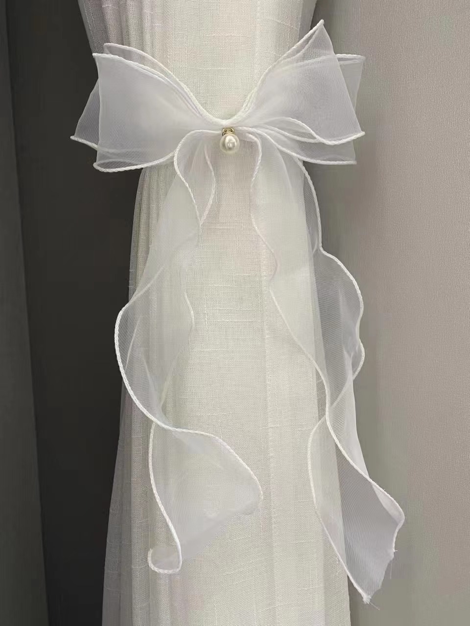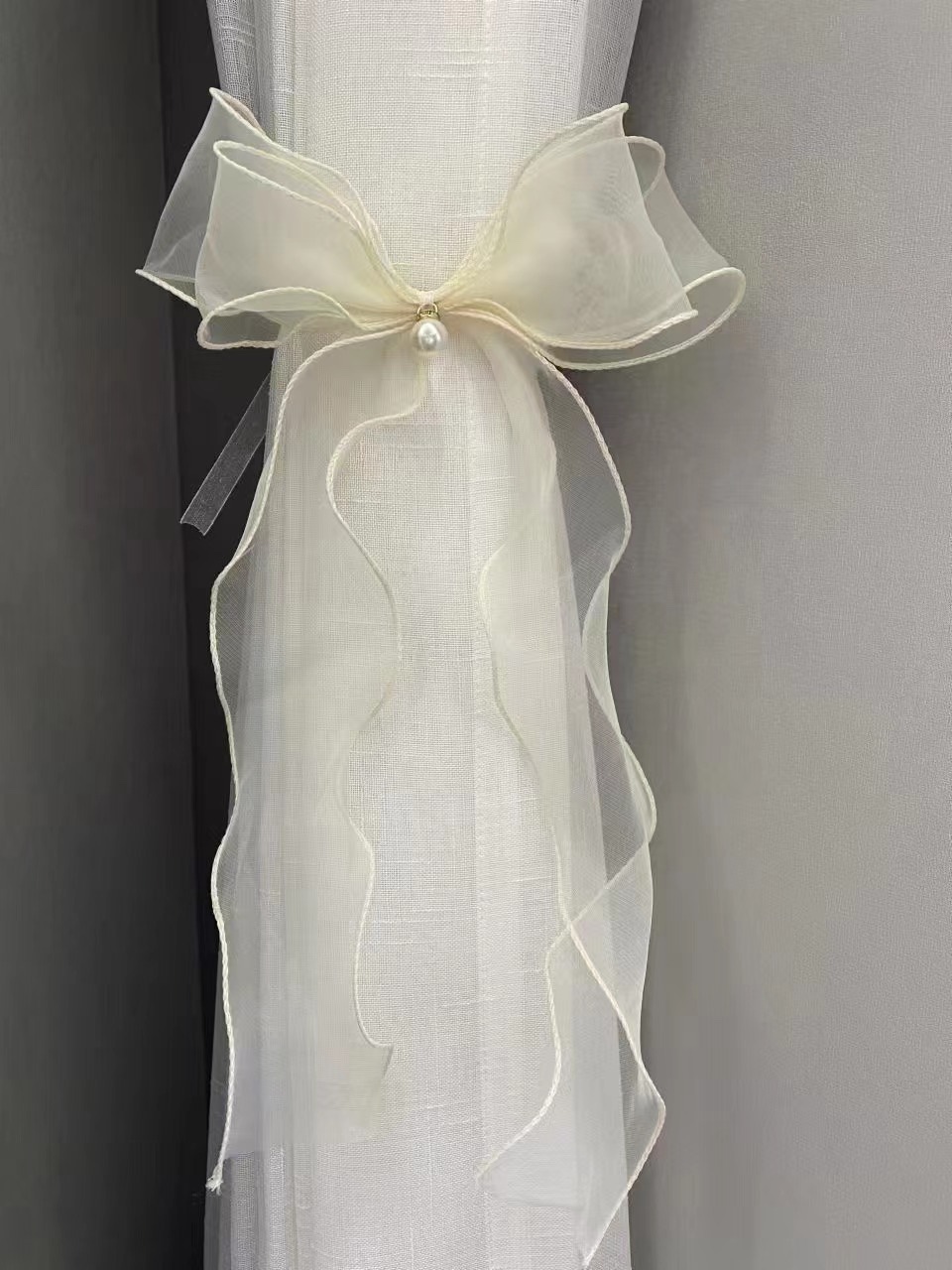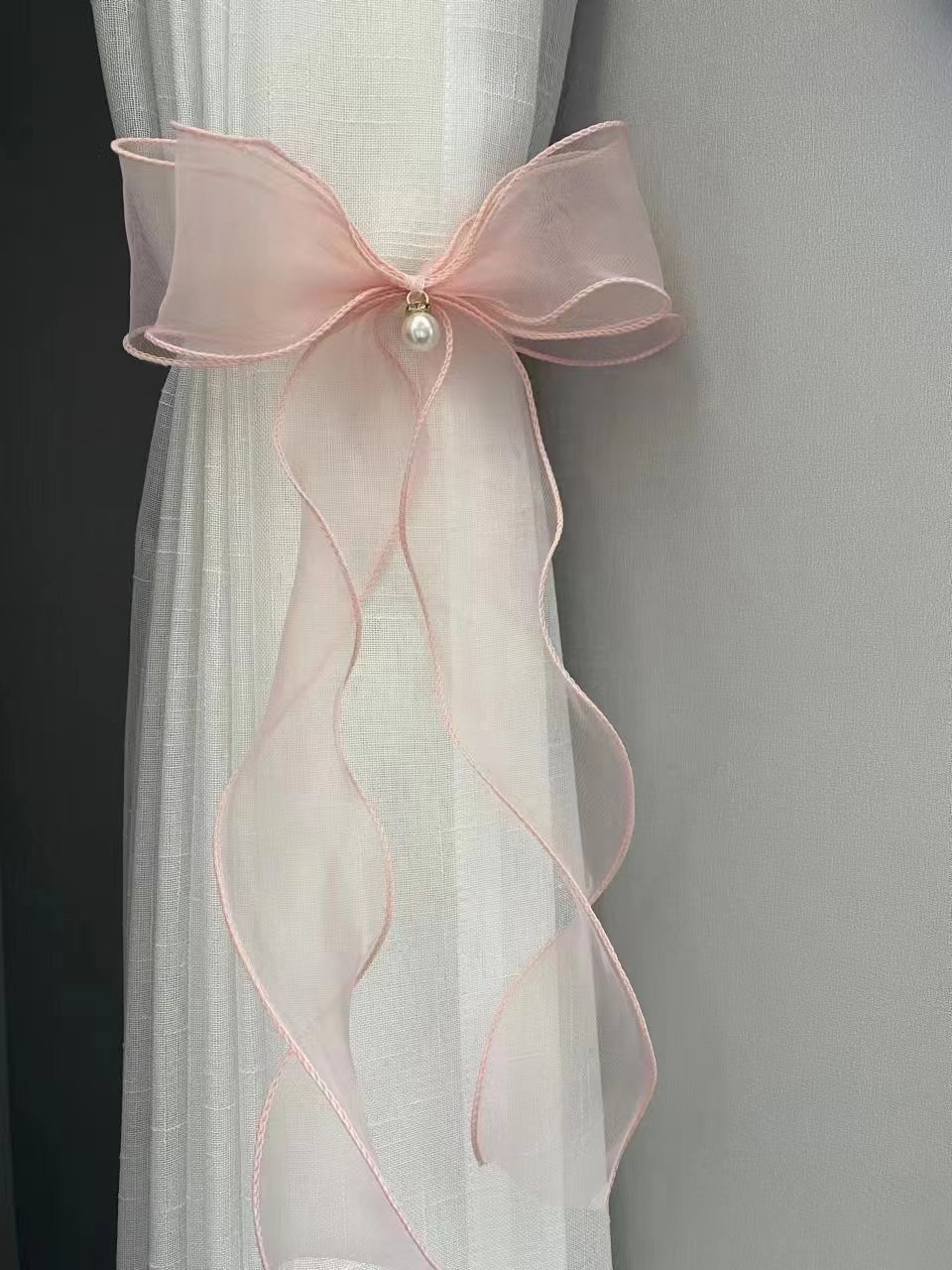 반투명 메쉬 활 커튼 장식 리본 넥타이 스트랩 코르셋 커튼 쥬얼리 교수형 장식 핀이있는 창 장식