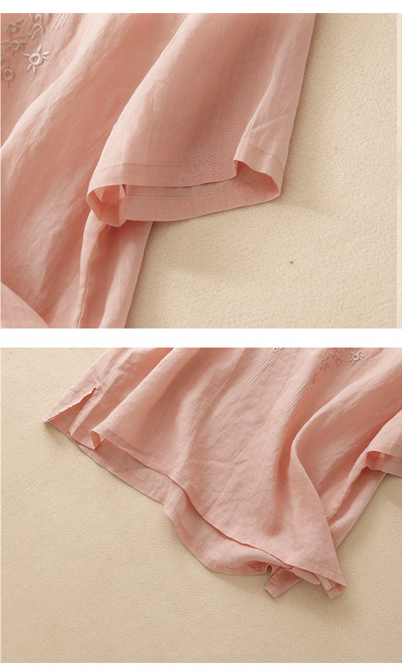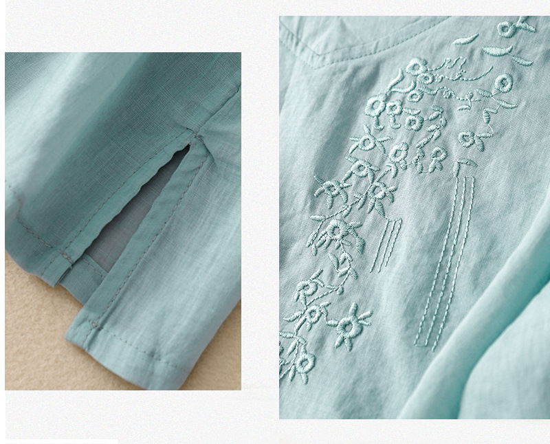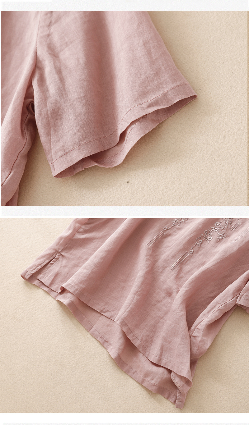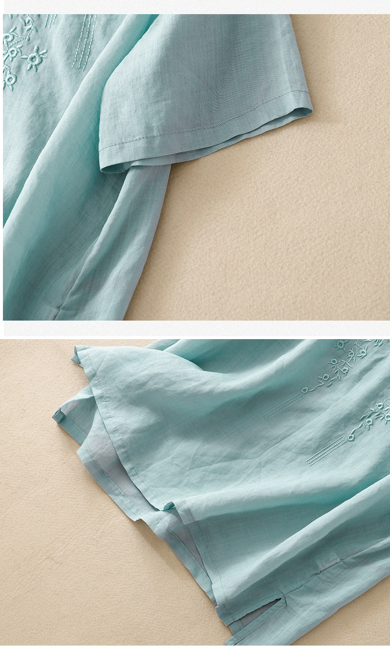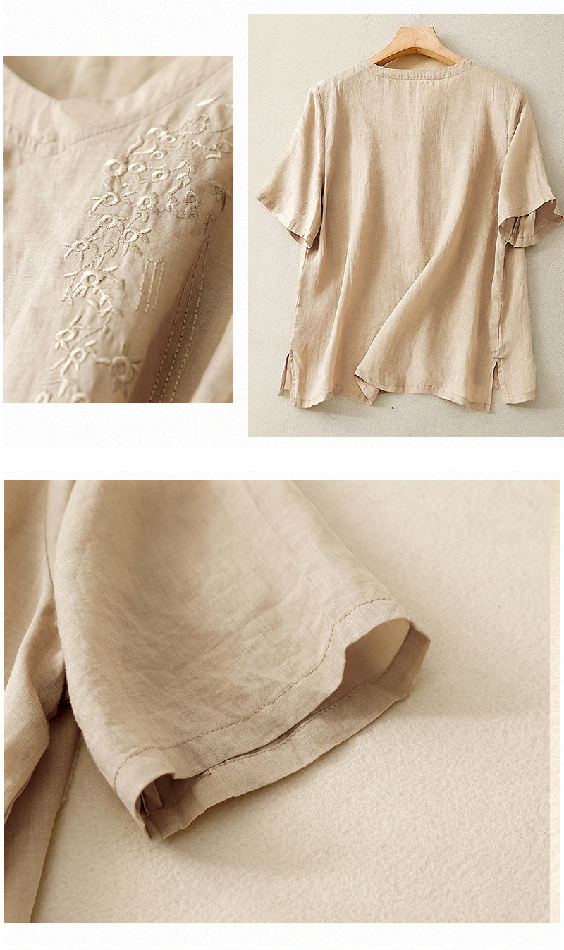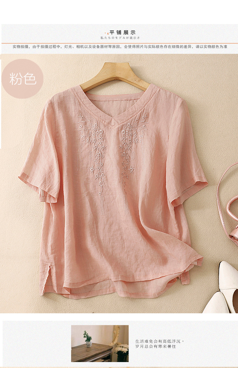 아티스틱 레트로 코튼 린넨 솔리드 컬러 자수 V넥 여성용 루즈핏 2026 여름 신상 만능 반팔 티셔츠 여성용 풀오버스토어 가기