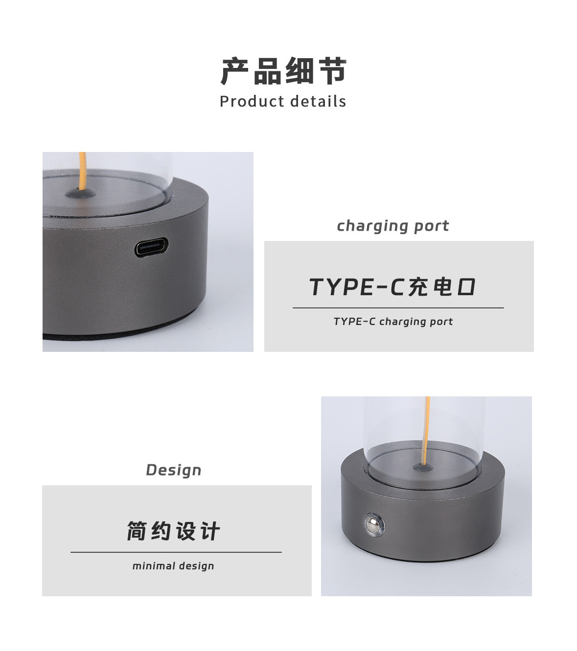 퀀텀 분위기 테이블 램프 야간 조명 심플 LED 필라멘트 충전식 소형 야간 조명 침실 침대 옆 조광 가능