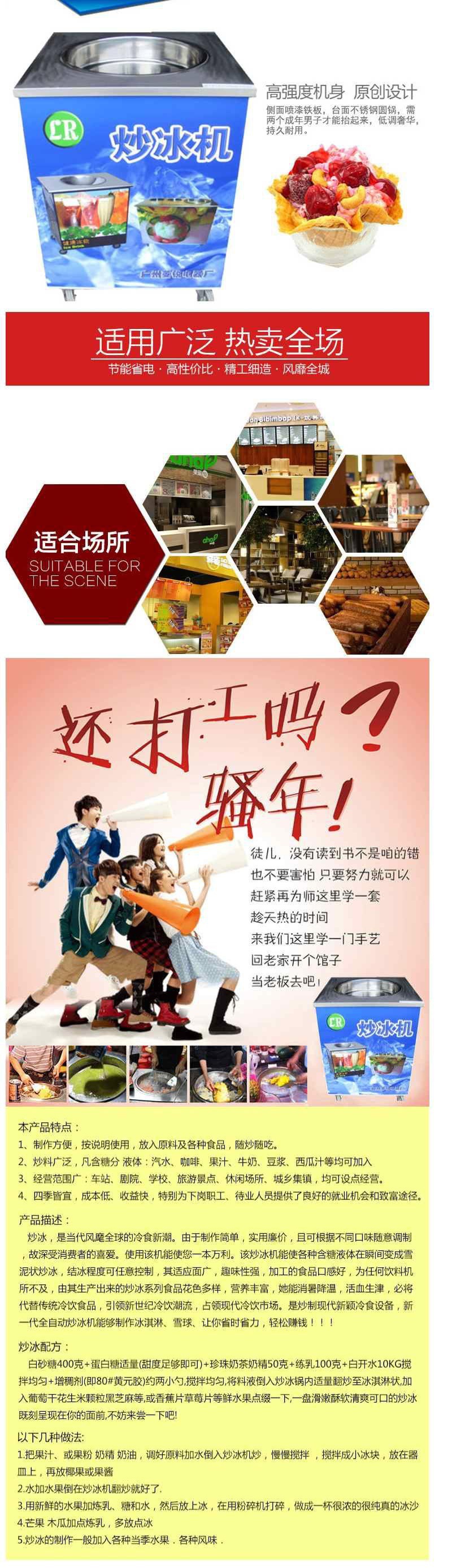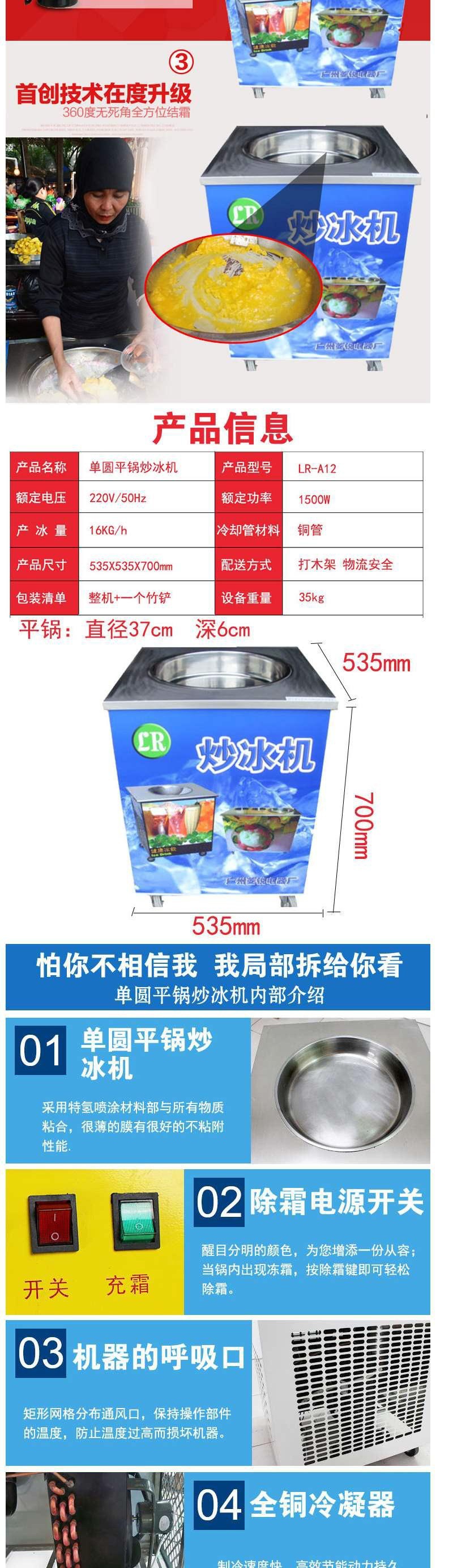 국가 UNPROF 상업용 수동 단일 냄비 과일 얼음 튀김 기계 단일 라운드 팬 LR-A12 두꺼운 컷 튀김 신 우유 기계
