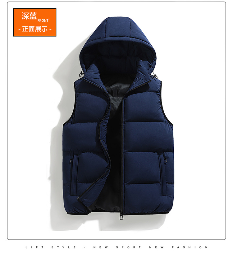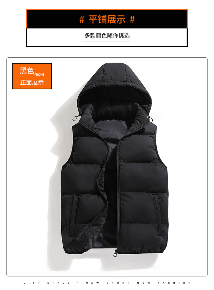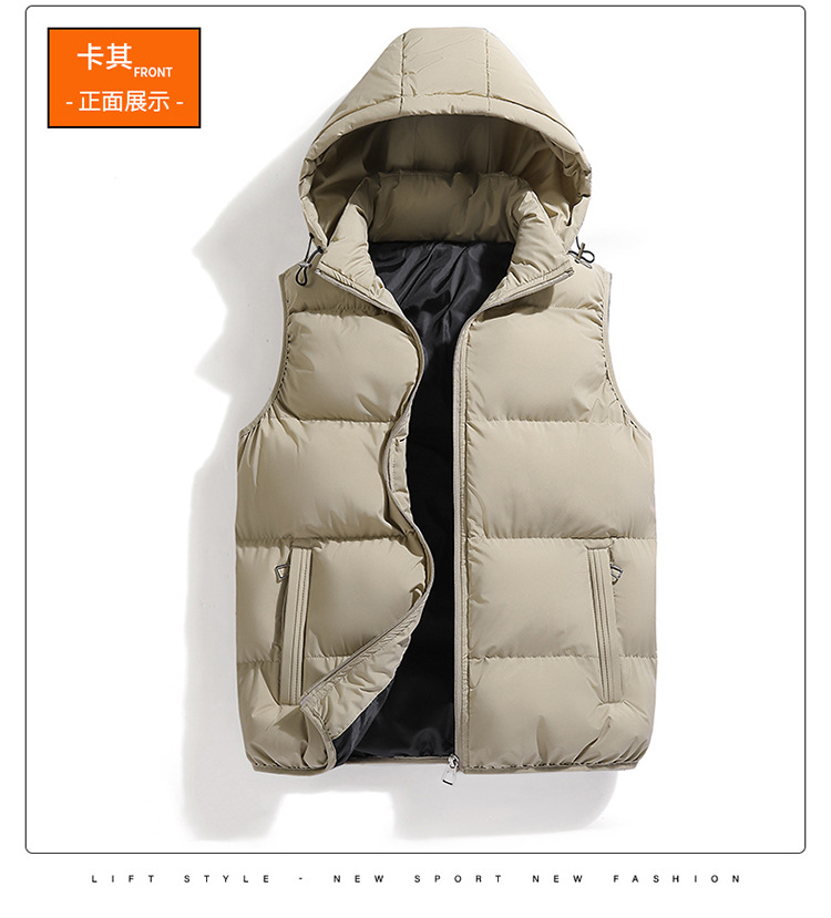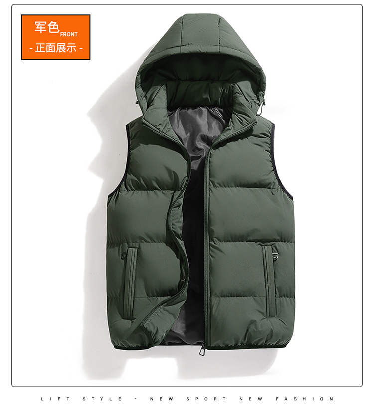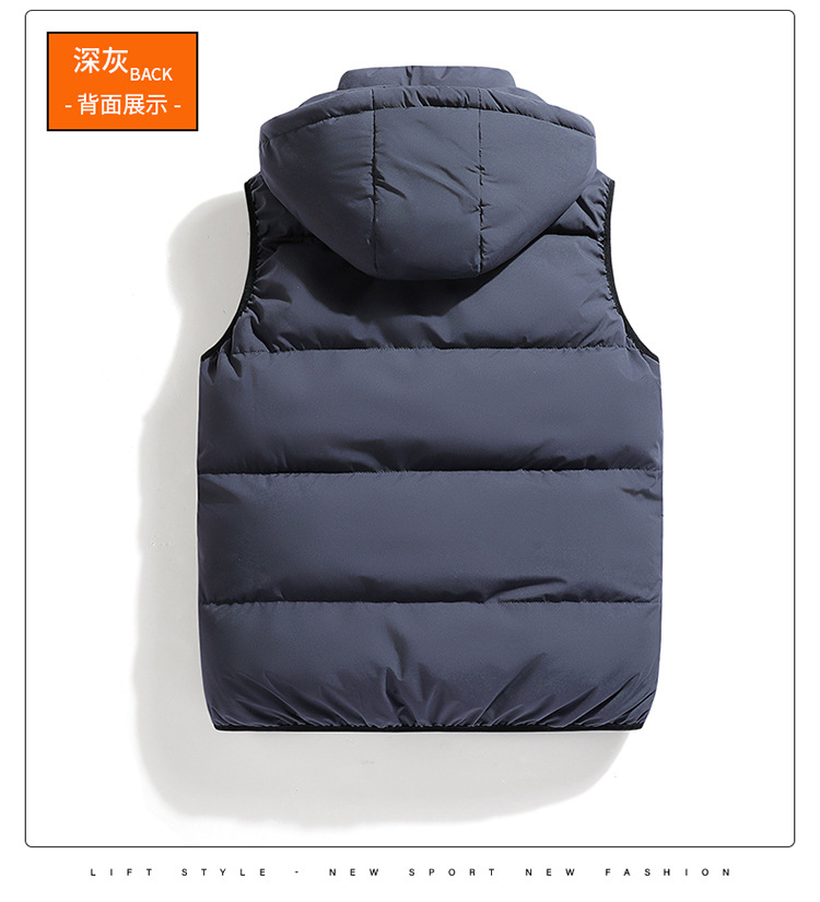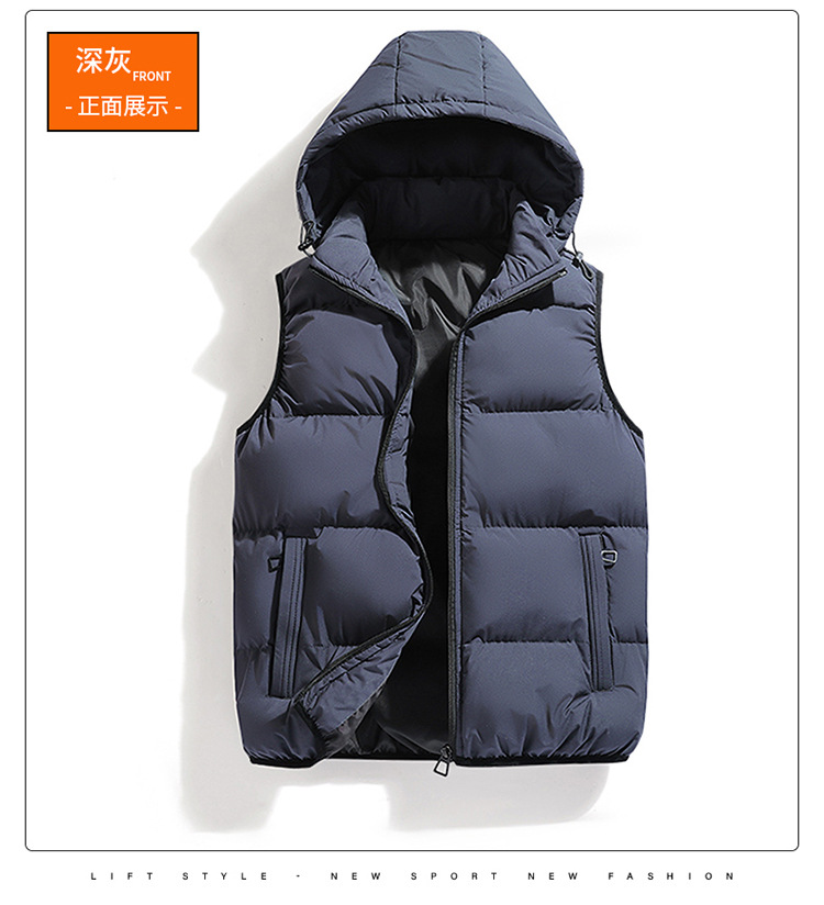 2026 남성 가을 겨울 따뜻한 조끼, 후드가 있는 루즈핏 솔리드 컬러 공식 버전 조끼, 면 조끼스토어 가기