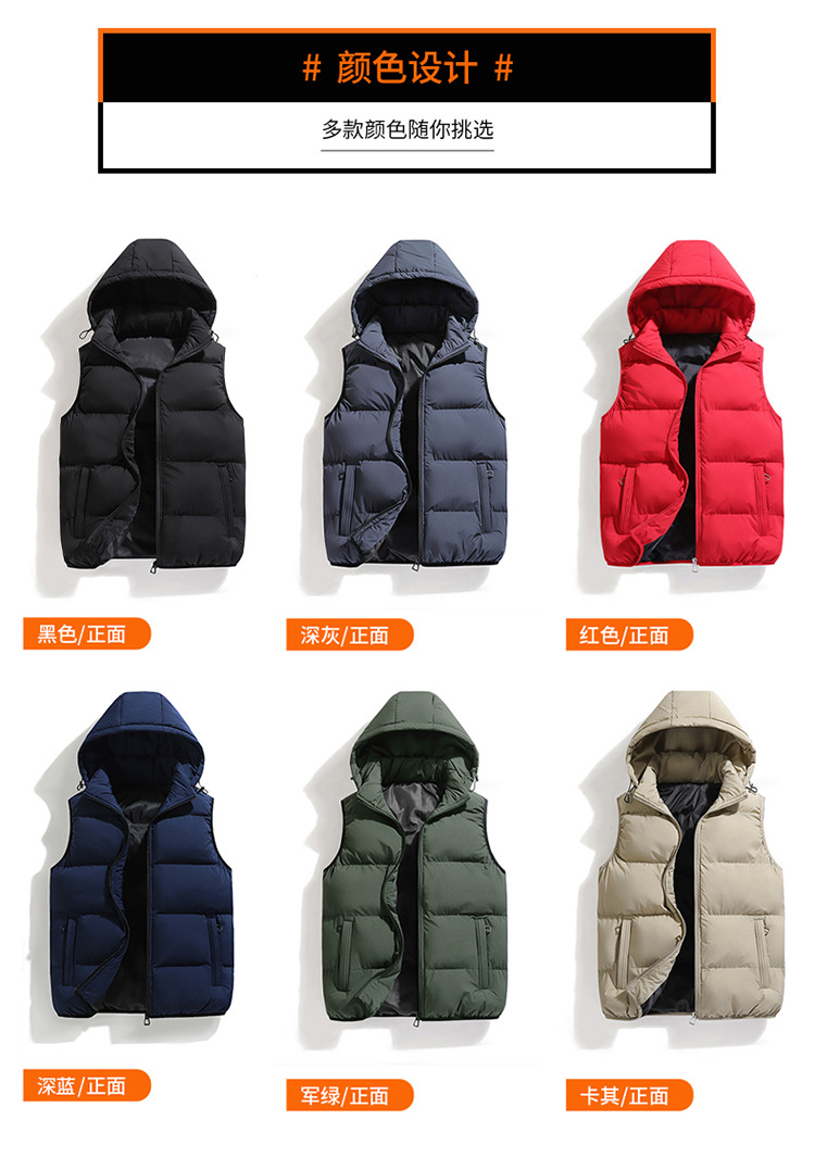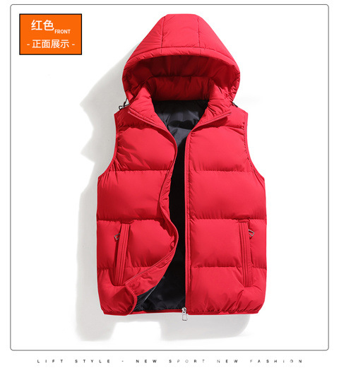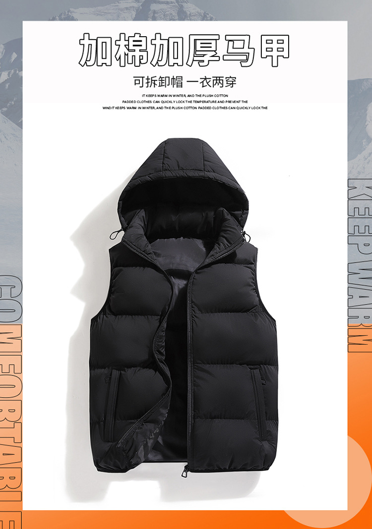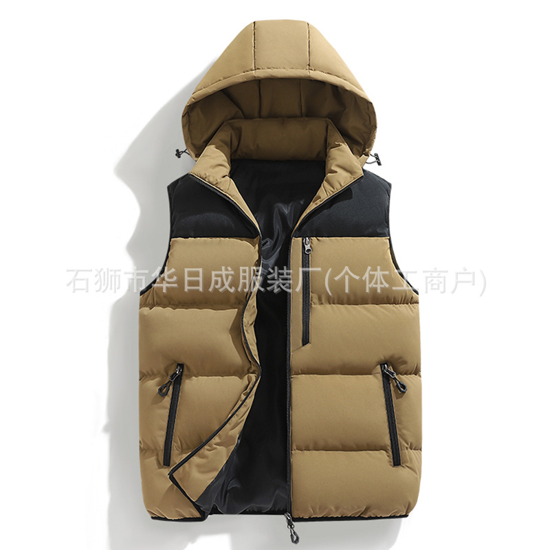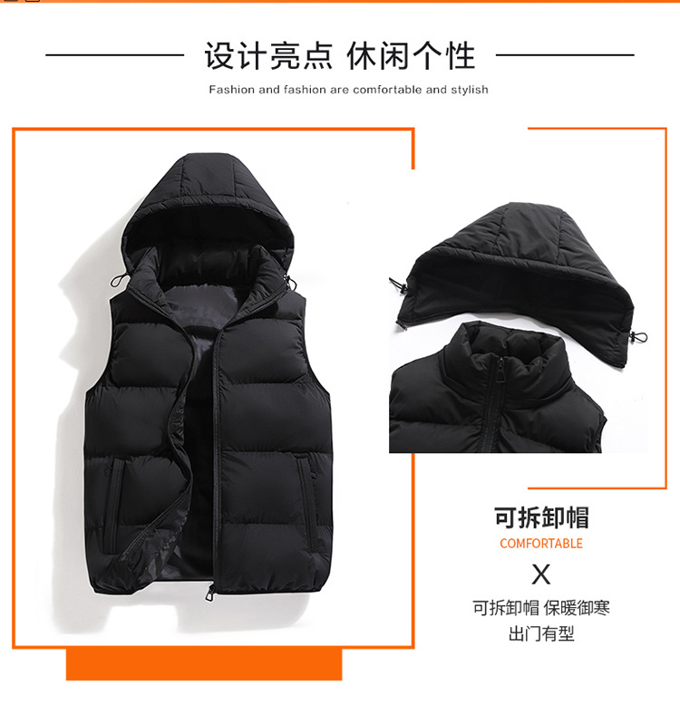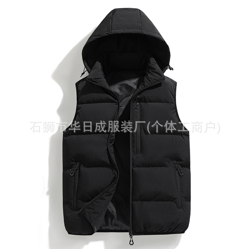 2026 남성 가을 겨울 따뜻한 조끼, 후드가 있는 루즈핏 솔리드 컬러 공식 버전 조끼, 면 조끼스토어 가기