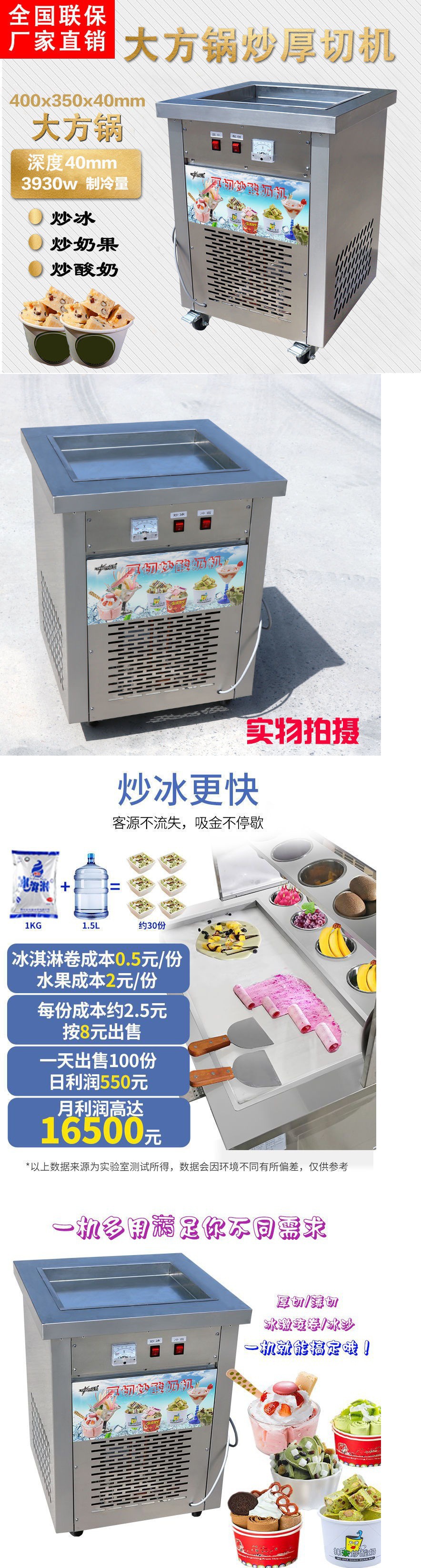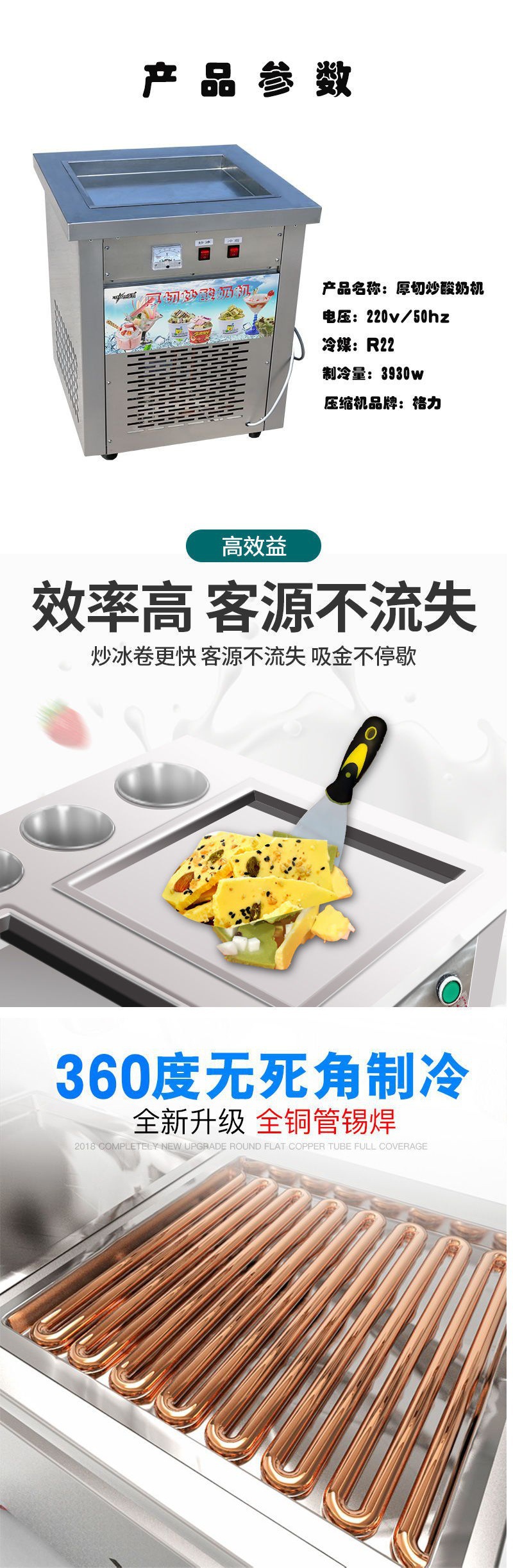• 두꺼운 절단과 튀긴 요구르트 기계의 냉장 용량: 3930w