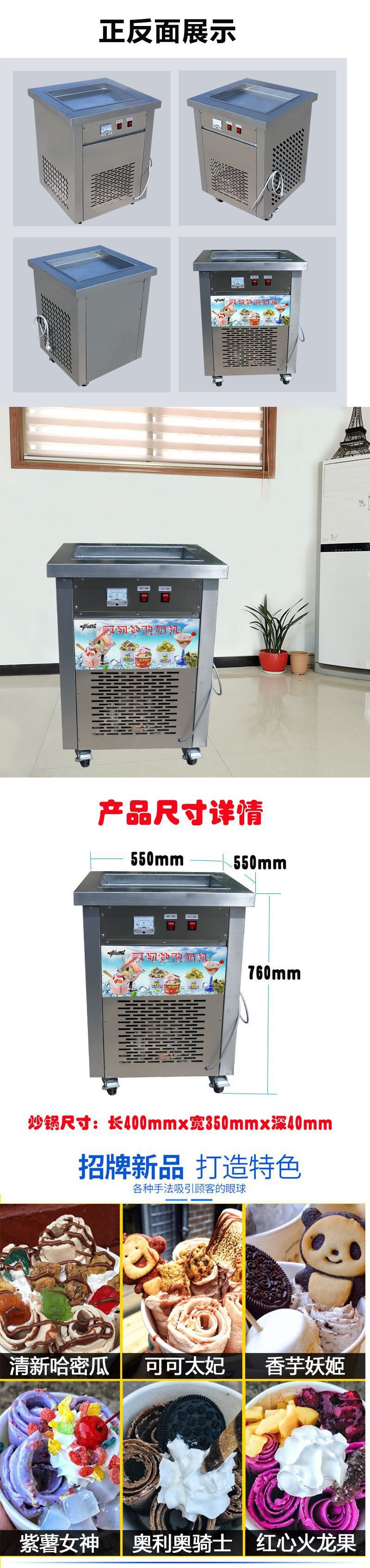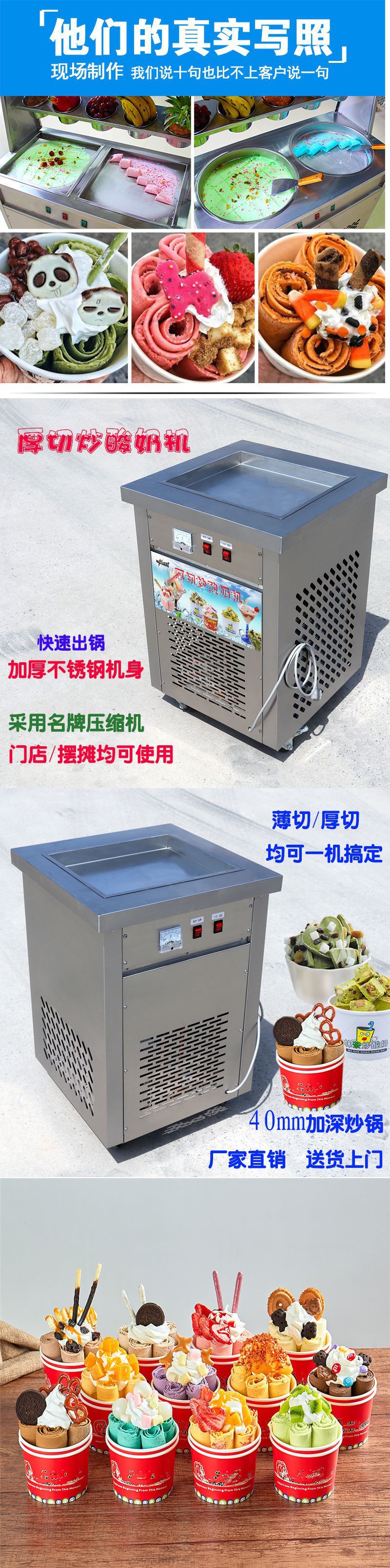 상업적인 두꺼운 절단 특별한 튀긴 요구르트 기계 튀긴 얼음 기계 자동적인 튀긴 아이스크림 롤 기계 야시장 스톨 스무디 기계